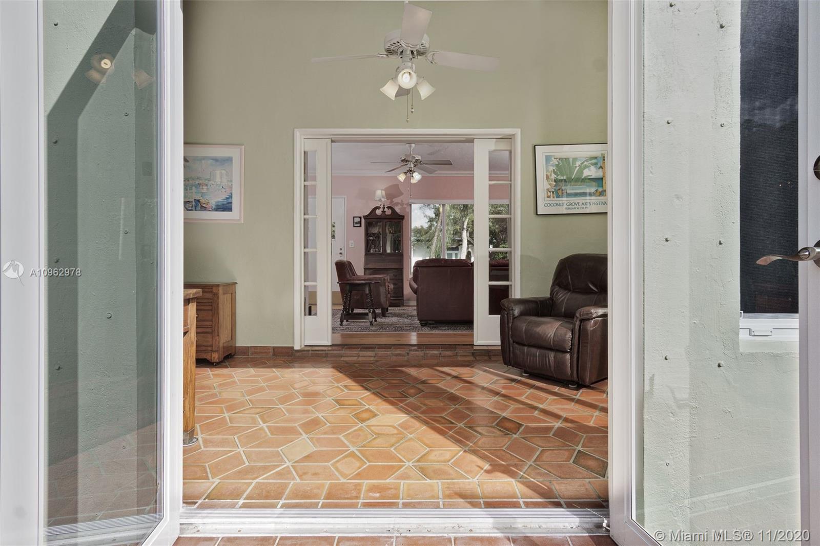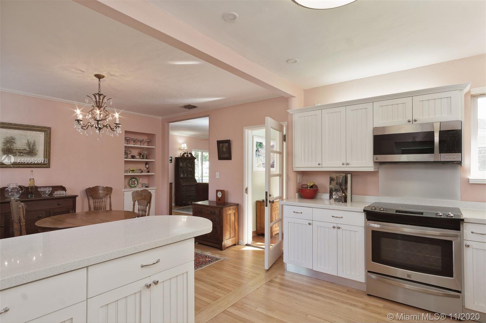 4 bedrooms and 3 full baths in Miami Shores. Big fenced yard with room for a pool. Attached 2 car garage and attached one car carport. 3 bedrooms and 2 baths in main house, 1 bedroom and 1 bath in attached guest cottage. New roof, hurricane impact windows and doors, alarm system. Original hardwood floors throughout plus original quarry tile floors in the Florida room. Formal living room has wood burning fireplace, dining room is open to the updated kitchen. Great location, walk to the community center, tot lot, golf course, swimming pool and country club. Move in condition.