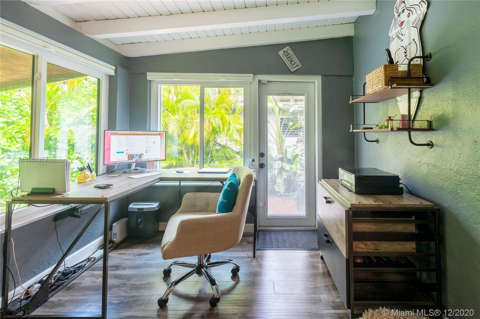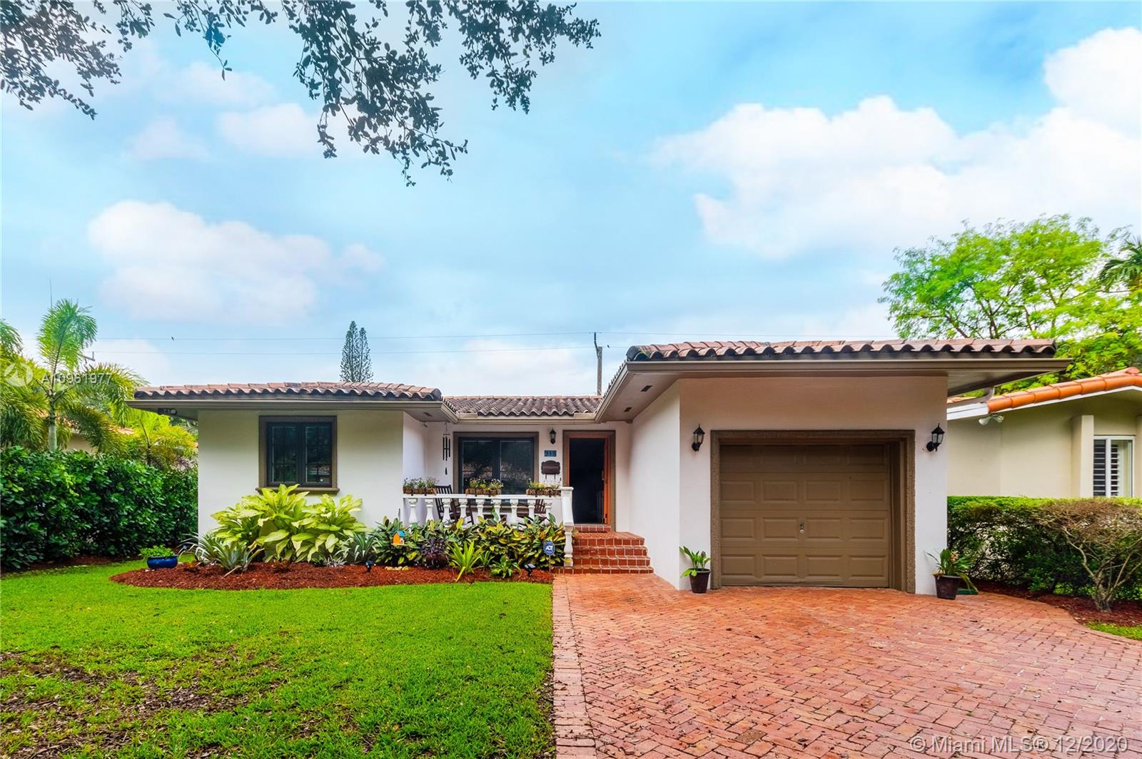 Captivating, single-family home in The Gables features modern amenities and a backyard oasis in a fantastic location. 2bed/2bath home in North Gables, spacious bedrooms & flexible living area with office/den. Updated kitchen with granite counters, stainless steel appliances & new dishwasher. This charming home has been fully redone with impact windows, laminate floors, new A/C and water heater, refinished ceilings with crown molding, new paint and LOTS more! Newly designed landscaping features a lush, tropical, private backyard perfect for a small pool or play area. Chicago bricks line the driveway & patio. 1 car garage with lots of extra space. Conveniently located near the airport, hospitals and A+ schools. Walk to Granada Golf Course and Miracle Mile. Don't let this one get away!