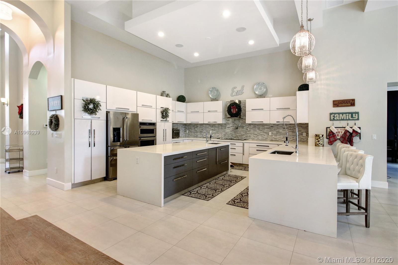 This gorgeous 6 bedroom, 5 1/2 bath dream home is a MUST SEE! Perfectly located in GRAND OAKS ESTATES on more than 1/2 acre is the one-of-a-kind custom-built Mediterranean style luxury home with over 6,514 square feet of modern and contemporary architecture. This energy efficient home was built with you in mind. Everything from 15 ft tall ceilings to a modern open-concept kitchen with stainless steel appliances. The downstairs 4-bedroom split floor plan includes a spacious Master bedroom & large sitting. The Master bathroom is an oasis featuring a huge double shower and freestanding soaking tub. Located upstairs are two private rooms & a bath. Step outside to the airy patio and pool area with a fully-equipped outdoor kitchen and built-in grill. This splendid home has everything you need!