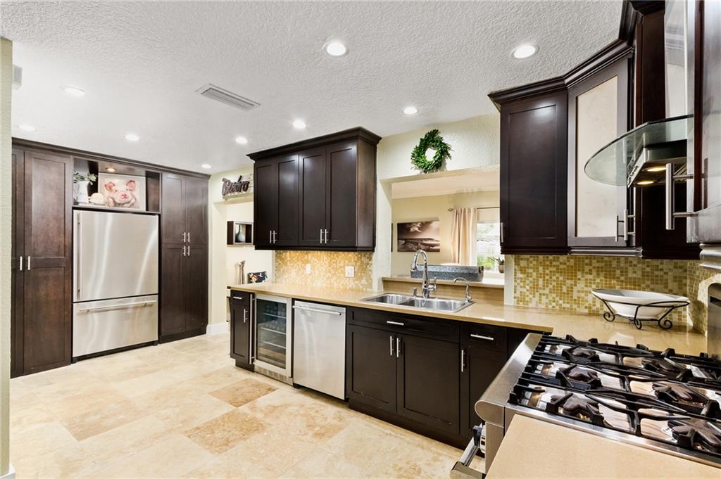 A Must See! *NEW ROOF and NEW A/C!* This gorgeous 3 bed, 2 bath home located in the highly sought after Sunrise Golf Village neighborhood welcomes you with beautiful landscaping, neutral tones, and hosts a seamless elegant flow between the spacious living room and dining area. Large Gourmet Kitchen with no expense spared - perfect for any chef with ultra high-end appliances including a Thermador six burner gas range (36 in), Thermador warming drawer, large JennAir refrigerator, and JennAir wine fridge! Beautifully updated bathrooms, travertine marble and tile flooring, Florida room off of the kitchen - perfect for enjoying your morning coffee! Spacious backyard including a shed! Large washer and dryer inside home. Enclosed garage with A/C - great space for a gym or home office! NO HOA.