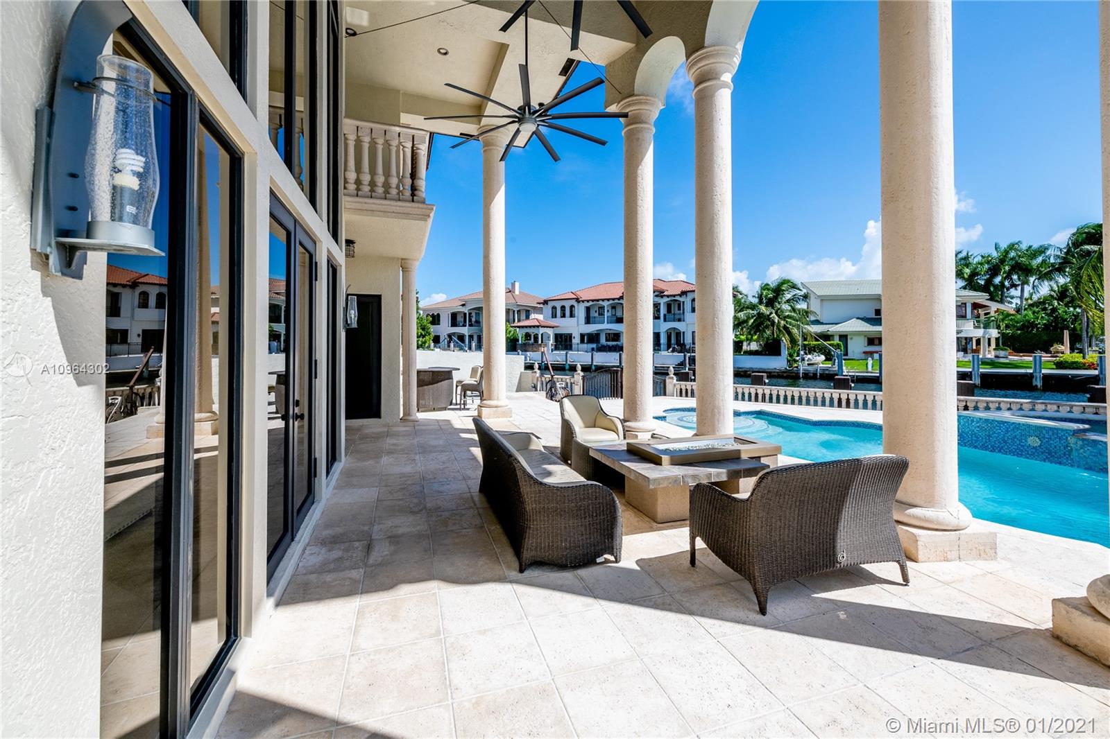 This Mediterranean Villa Estate boasts 202 feet of water frontage in an oversized corner lot located inside the gated community of Eastern Shores. Featuring South & West views- splendid sunsets take center stage every evening here, perfect for entertaining. This unique 7,792 sq ft Villa features 7 BR+9 BA with floor to ceiling windows providing plenty of natural light and a dramatic grand foyer entrance with double staircases, panoramic water views and luxurious finishes throughout: gourmet kitchen with top of the line appliances, formal dining room, media room, balconies, a master suite with outdoor terrace, huge pool & outdoor deck with summer kitchen. A private dock on a no wake zone area with easy access to the Ocean and no fixed bridges, makes this truly a Boaters Dream come true.