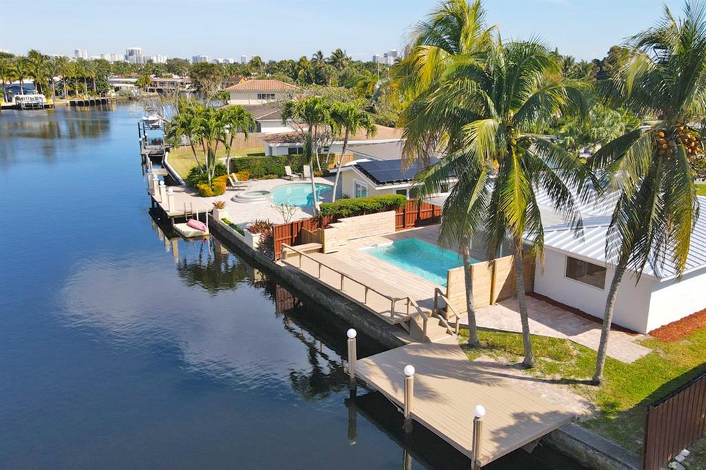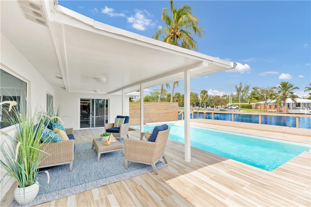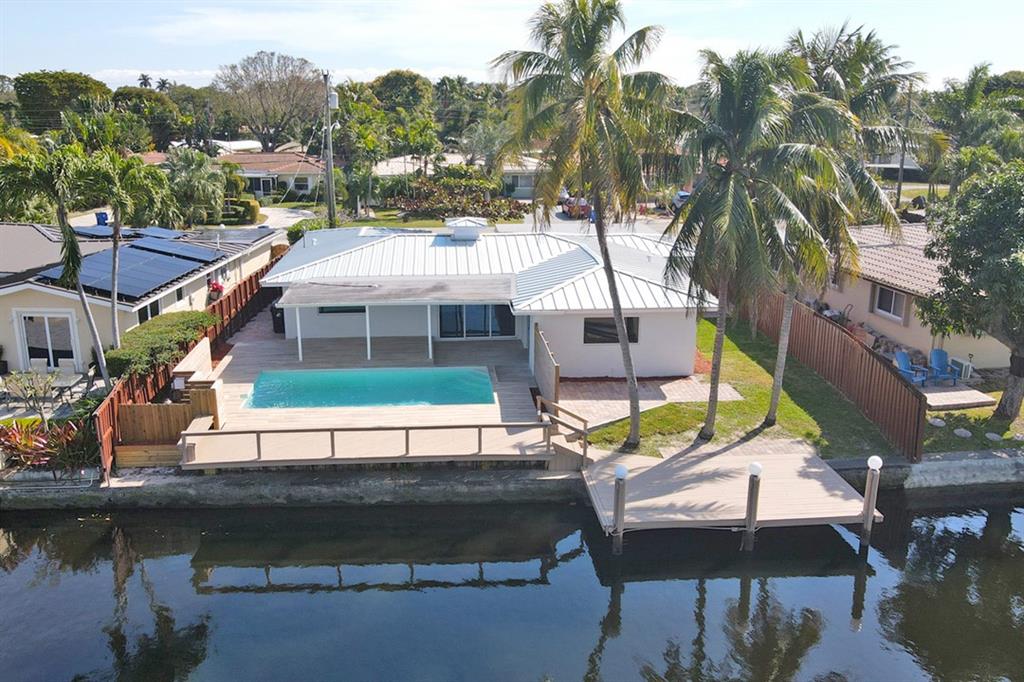 Do not miss this waterfront masterpiece just minutes by boat to the ocean! Be the envy of your friends and family as you show off the practically endless canal and poolside views just across the bridge from Wilton Manors. Boasting a brand-new metal roof, a grand kitchen with custom white cabinetry and high-end appliances, quartz countertops, impact windows and doors, ceramic tile throughout, 3 bedrooms, 2 fully renovated bathrooms, a laundry room and a massive family room in the front, your new luxury estate is completely rewired to today's standards. With a split bedroom floorplan and covered deck directly accessible from the master bedroom and living room, you and your guests will flow seamlessly from indoors to out, all the while retaining the privacy you long for.