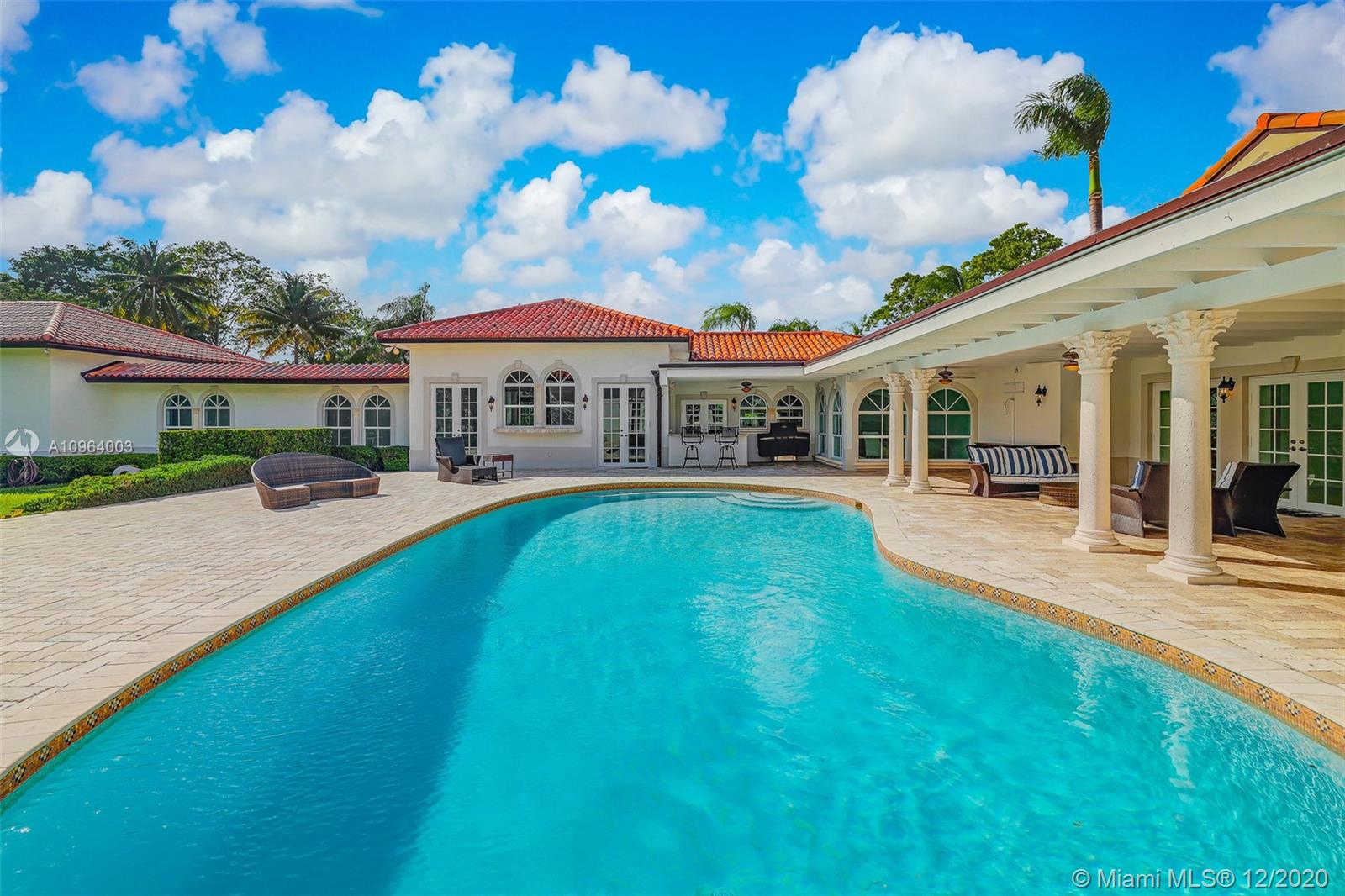 This expansive north Pinecrest estate sits on a very private acre lot, on a calm street. The house is perfect to isolate from the rest of the world and enjoy the peaceful Pinecrest quality of life, but also perfect to entertain! The 6 bedroom house offers spacious rooms with a convenient split layout for a separate office area or teenage quarters. Light pours into the house throughout. The master suite takes up a wing of the houses is very private. The U shaped property allows to see the garden and pool from everywhere. The movie theater and inside bar contribute to the entertainment excitement. The outdoor area also offers amazing entertaining with a covered patio and outdoor wet bar around the pool. The house is easy to show. We are just a phone call away!