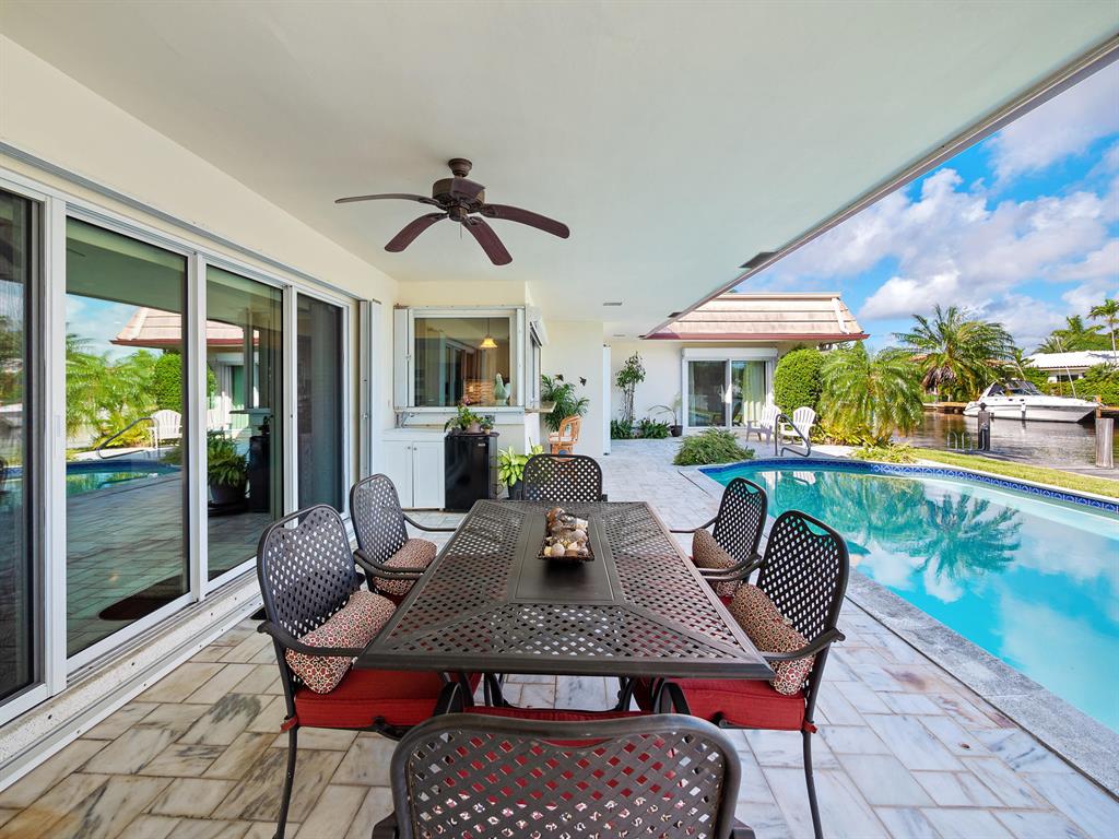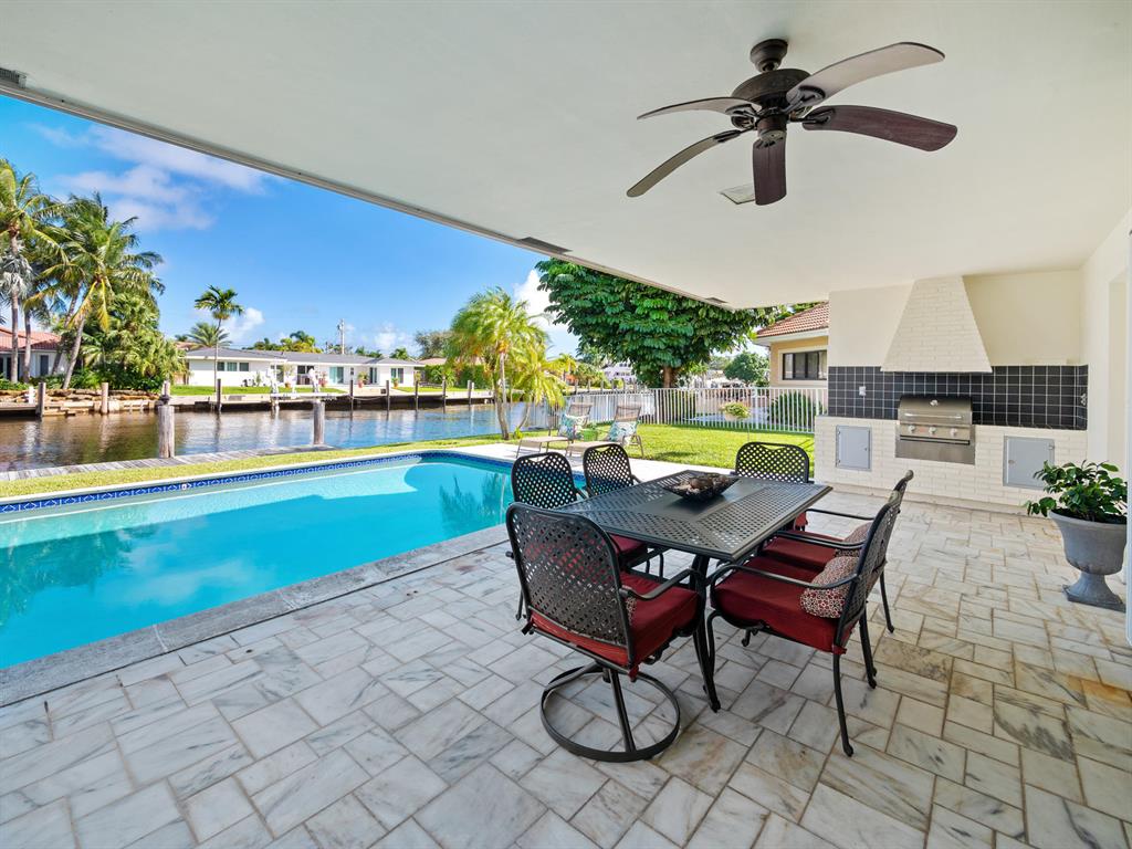Motivated Seller! Make sure you bring your clients to this charming American ranch-style waterfront house with no fixed bridges, a 106 feet long seawall, and with its own boat dock. Located in the wonderful exclusive neighborhood of Fort Lauderdale known as The Landings, this 4,175 square foot, 4 bedrooms and 4 full bathrooms, house has a great location with a spectacular view from both the living room and kitchen. The kitchen features genuine wood cabinetry, granite counter tops, and has windows that open to conveniently serve as a bar area with outdoor seating.