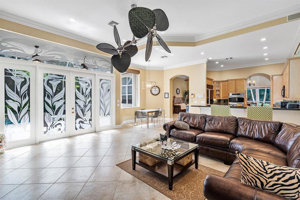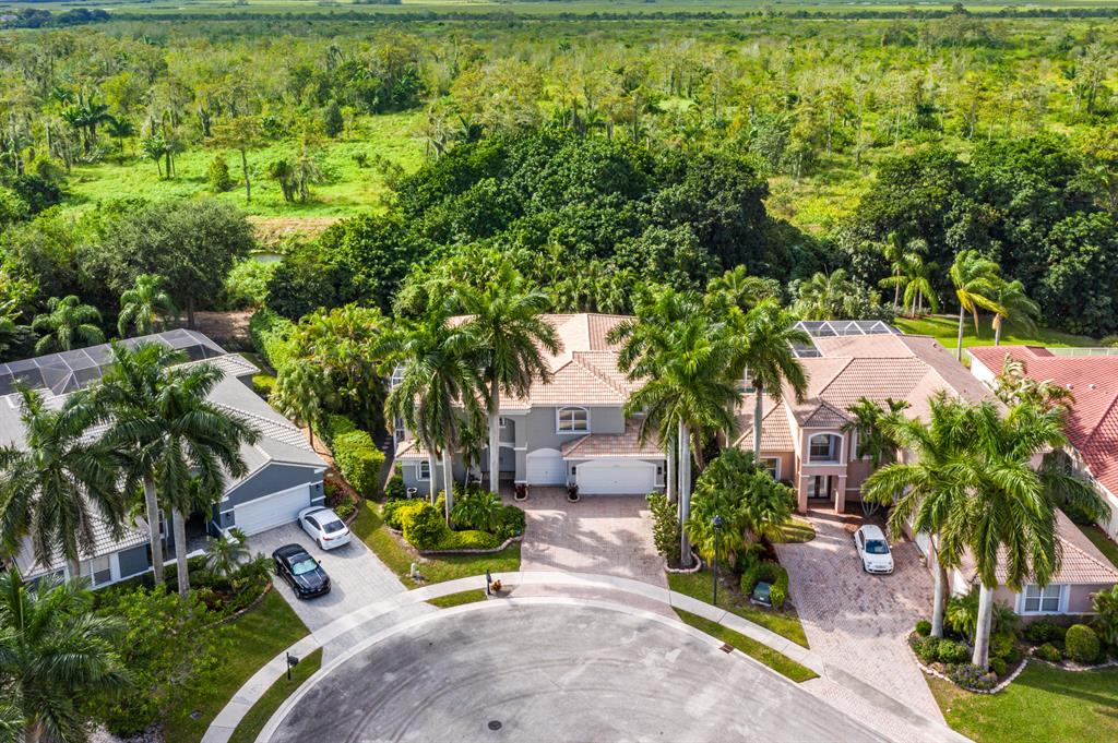This beautifully appointed courtyard home with 5 bedrooms+loft,4 1/2 baths and 3 car garage sits on a mini cul-de-sac backing to a nature preserve.Walk through the courtyard with large pool,outdoor shower and guest house(with guest bedroom and bath)to access the home.Features include accordion hurricane shutters,tile installed on the diagonal,engineered wood installed on the stairs,second story landing and loft area,crown moldings,LED lights,outfitted closets,central vac and more!Formal living and dining rooms.The gourmet kitchen features wood cabinets,granite countertops,black glass refrigerator and stainless steel appliances.The family room is open to the kitchen.The 1st floor master suite has master bath with dual vanities,jetted tub,shower & bidet.Three guest bedrooms and two baths up.