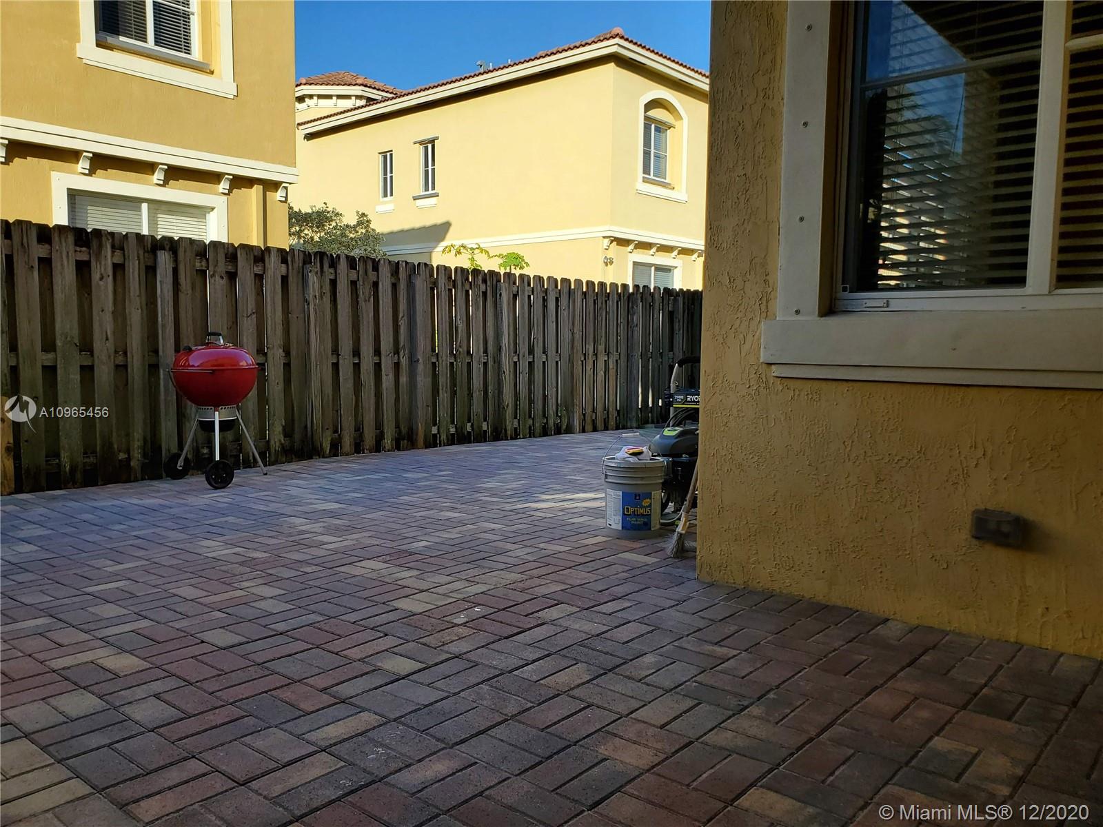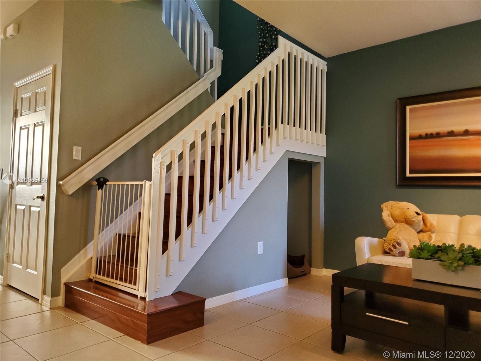 Beautiful corner unit with large U-shape yard paved throughout. It features a newer kitchen with granite countertops and 1 year old stainless-steel appliances. Huge master bedroom with large walk in closet and high ceiling. Upgraded master bath with marble floors, quarts countertop & hardwood cabinets. 4-ton A/C about 1 year old. Tiles on 1st floor, laminate on stairs and 2nd floor. 1 car garage 2 car driveway. Hurricane shutters. Caseta Wireless Setup and dimmers in most rooms.