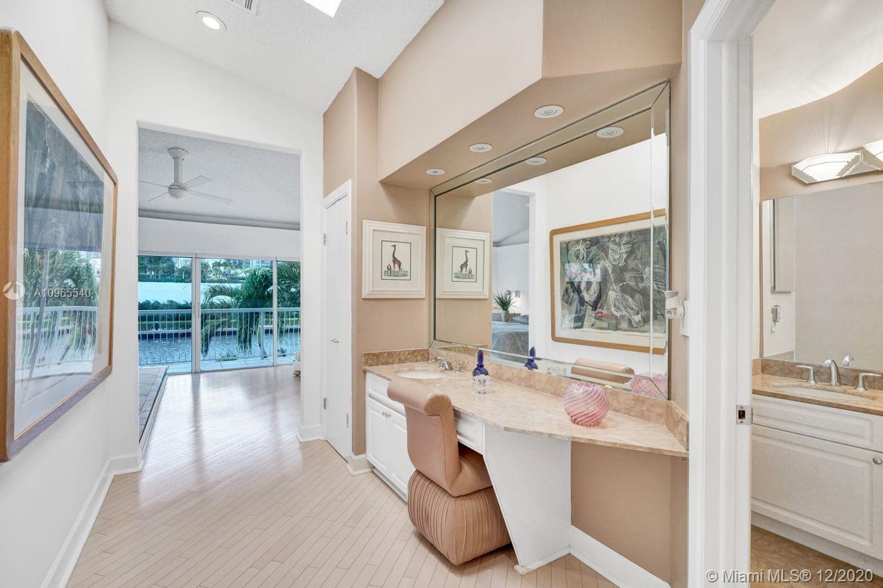 ESCAPE COVID FEARS! Perfection & Privacy at GOLDEN POINTE. Experience open living in an end waterfront townhouse with a 2-car garage located in an exclusive private gated community. Direct intercostal water views from back patio & master bedroom + custom built-ins thruout the home. Light floods into all rooms. Downstairs features open kitchen & breakfast rm, formal dining rm area & living rm with wet bar, plus guest bathrm. Upstairs has the coveted laundry rm & sink plus 3 bedrms & 2 baths. The original plans are for 4 bedrms which two were converted to one oversized rm. The luxurious master bedrm has an enormous walk-in closet, a make-up area plus shower & tub. The community has a resort style pool & 24-hour guard gate security. Nearby A rated schools, shopping & houses of worship.
