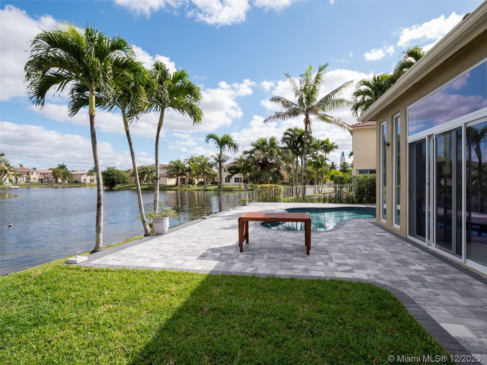 Enjoy outdoor living & beautiful water views - your own private oasis! This gorgeous, gated community home, features 5 bedrooms, 3 bathrooms, an open concept layout with tile flooring throughout spacious living areas and high volume ceilings - perfectly light & bright! The generously sized kitchen showcases designer concrete countertops, large walk-in pantry and newer stainless steel appliances. Enjoy amazing water views, an extended covered patio perfect for BBQ, large oversized yard & sparkling pool, this home is ready for entertaining! Impact windows on first floor & accordion shutters on second floor. Over $90,000 in upgrades await you! Contact me for a full list of upgrades. Great location close to excellent schools, shopping, dining, parks, highways & transportation!