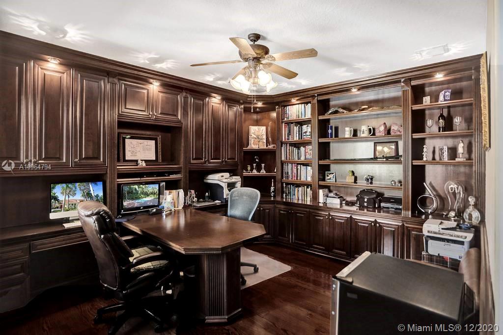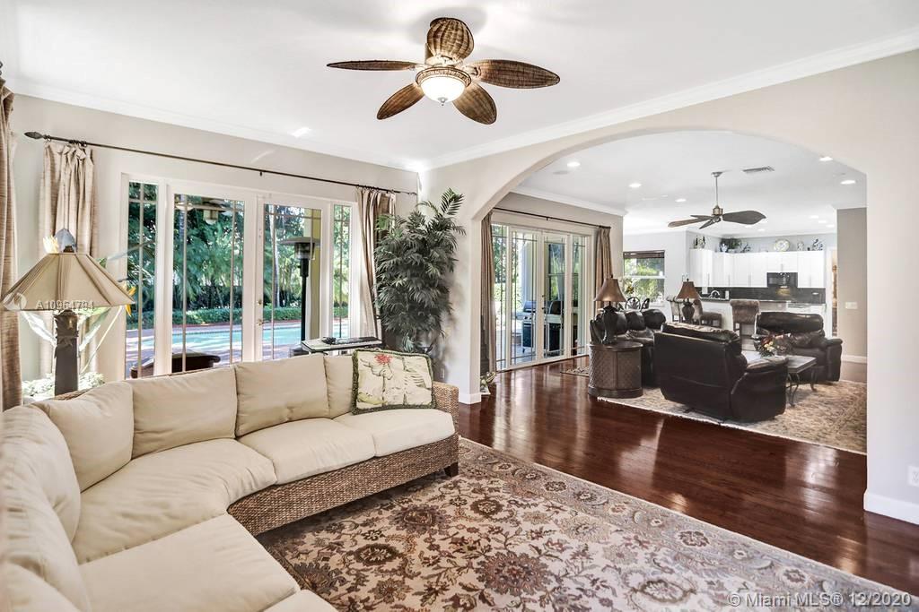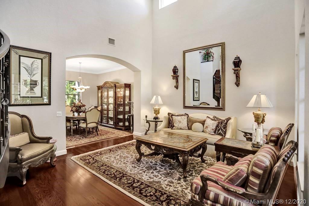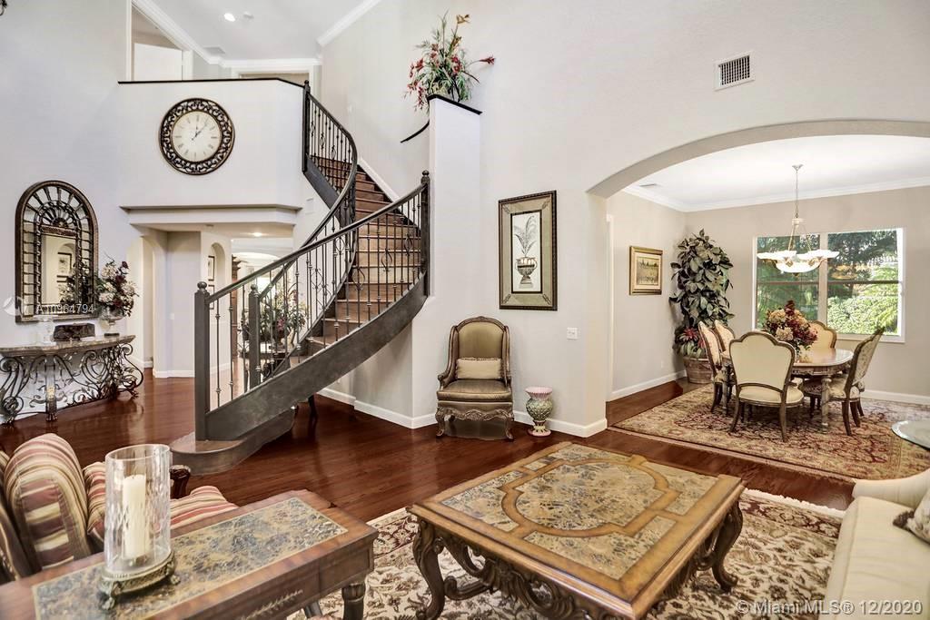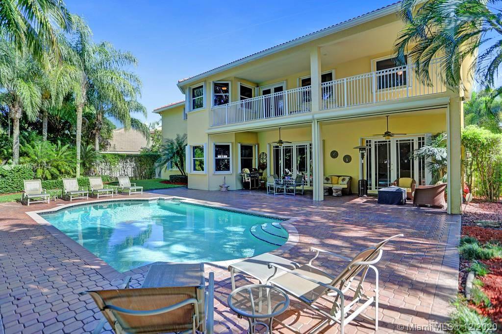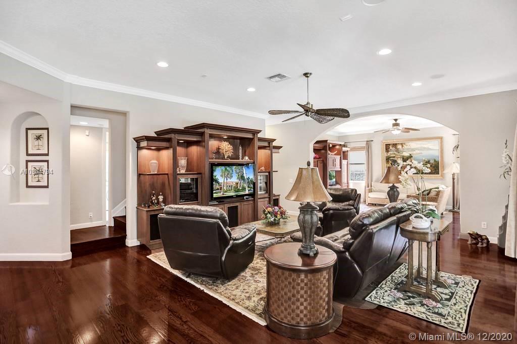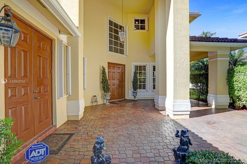 PRICE DROP Popular Sanibel model tucked on a royal palm tree-lined street in gated community of Weston Hills. Fresh neutral paint with real wood floors grace the living areas. 6 bedrooms, 5.5 bathrooms + office (built-in wood cabinets and desk) + 20x14 playroom and loft (could be 6th bedroom) span 5365 sq ft (inclusive of 1/1 guest house). Grand entry with volume ceiling and elegant custom staircase. White kitchen with center island and breakfast nook overlooks the family room. Luxurious owners wing w/sitting area features 300 sq ft balcony. New flooring upstairs in all bedrooms. The resort-style backyard features an expansive paver patio with a covered patio with rolling screens that open and close with a remote. Fully fenced privacy hedged. Full house generator, accordion protection