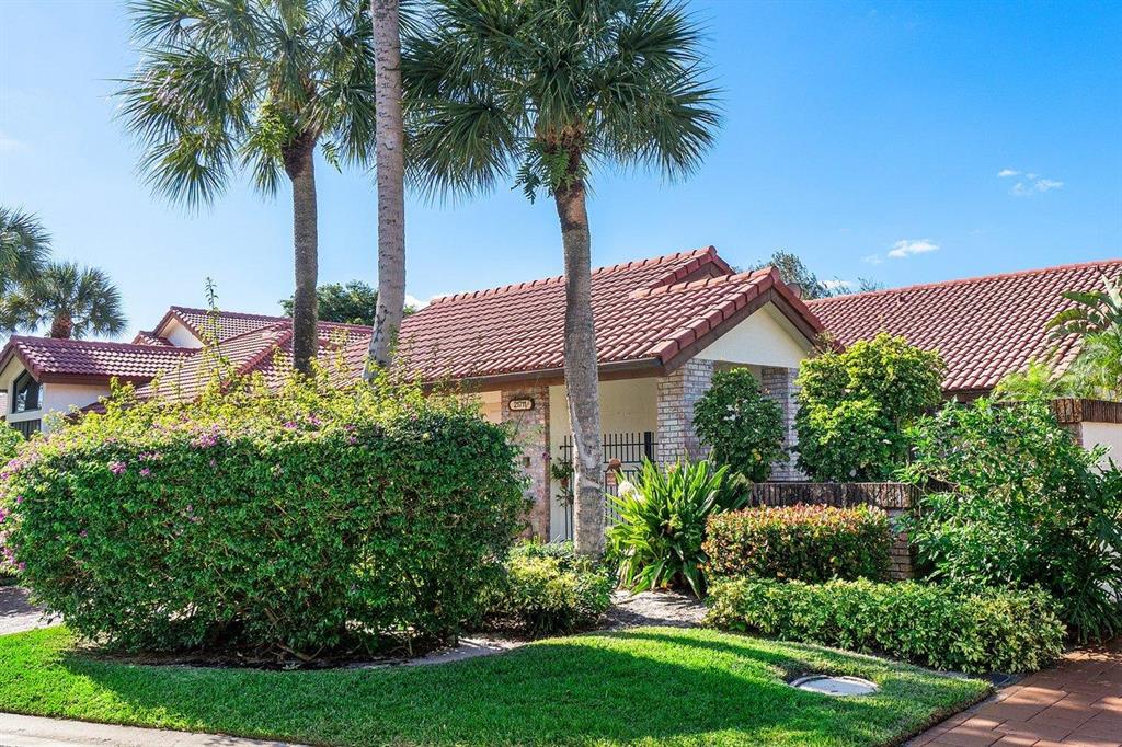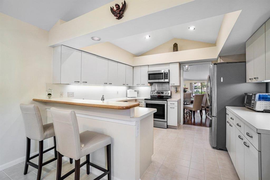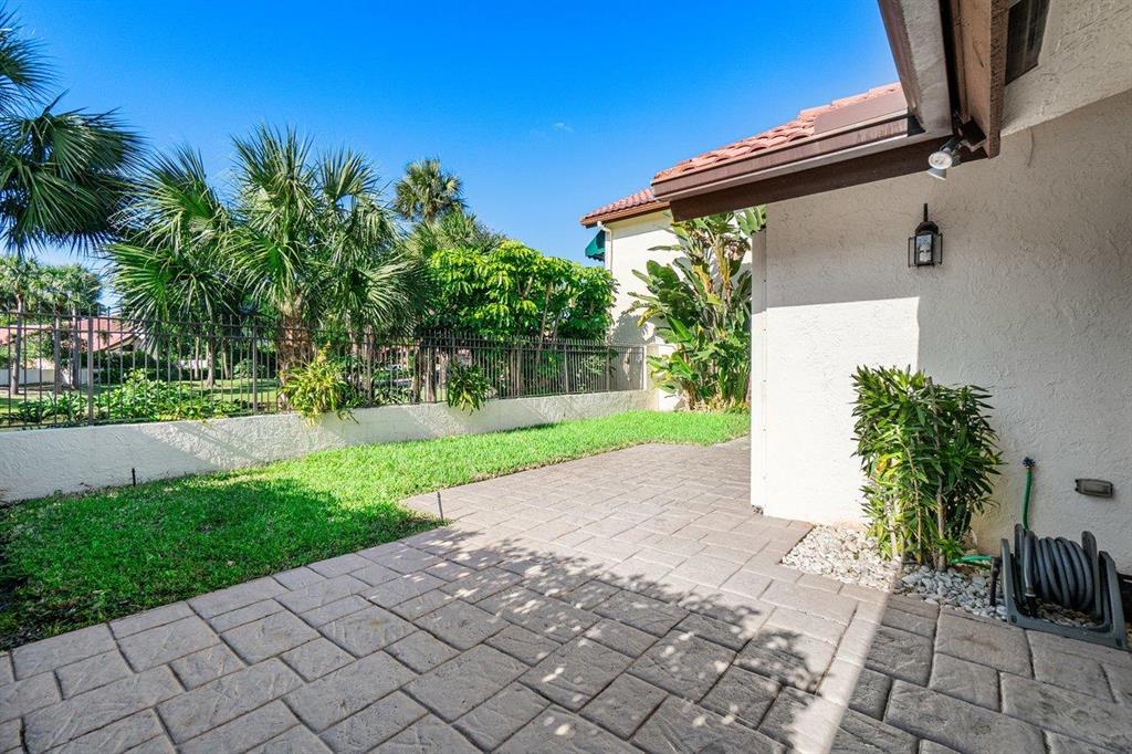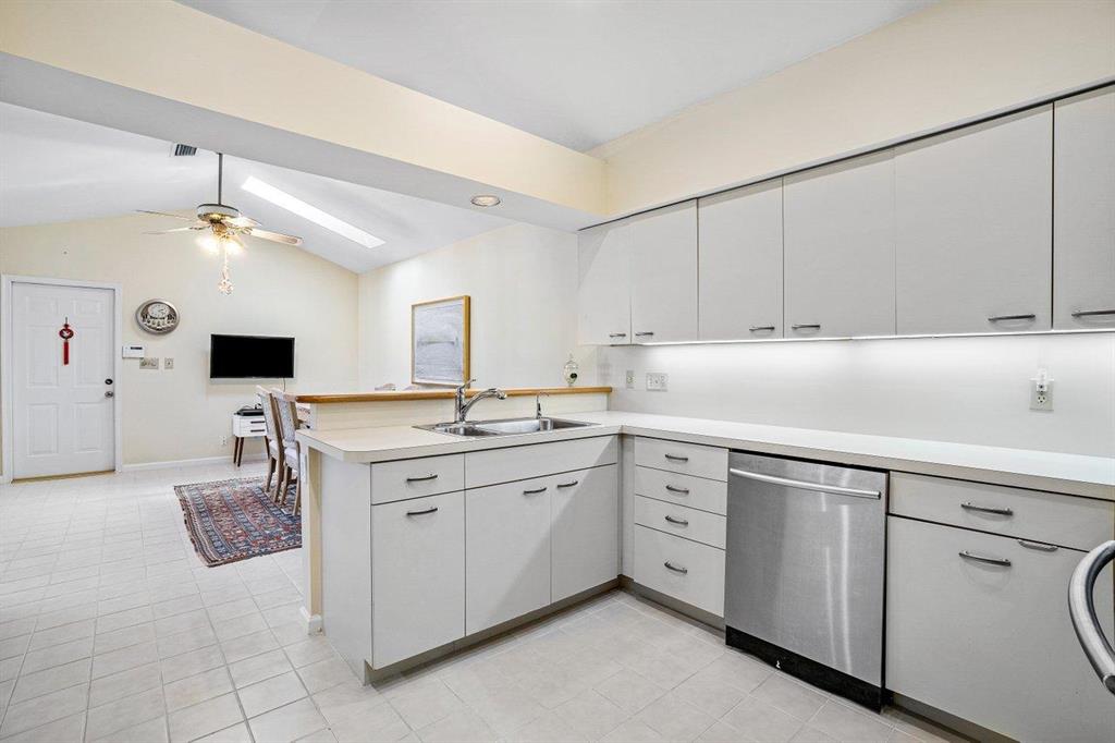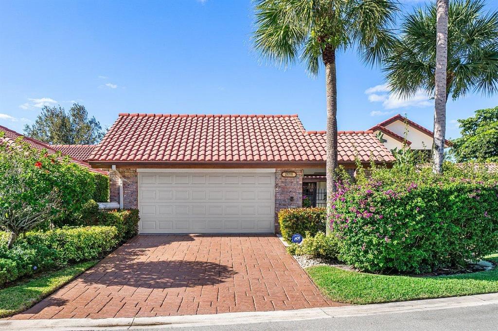 This home shows beautifully! Rarely available lakefront 3BR Cayman model offers a bright open floor plan, split BR's, family room, formal living & dining room. Volume ceilings & skylights bring an abundance of natural light. Dramatic floor to ceiling fireplace. Open kitchen w/ Samsung SS appliances (2017), breakfast bar & built in work space. Master suite offers vaulted ceilings, lake & patio views. Beautiful master bath w/dual sink granite vanity, soaking tub & separate spa like shower. Tropical lushly landscaped courtyard entry leads to your private backyard patio & greenspace perfect for added outdoor living space and entertaining.
