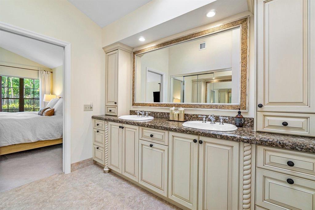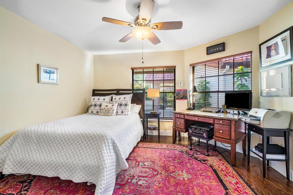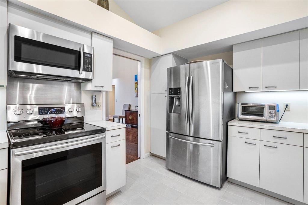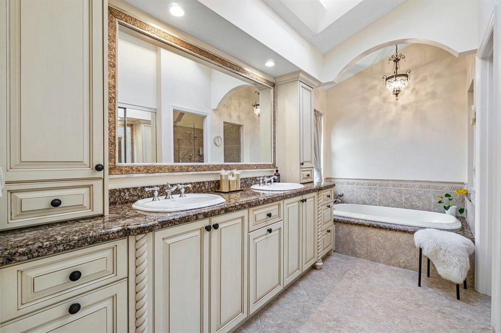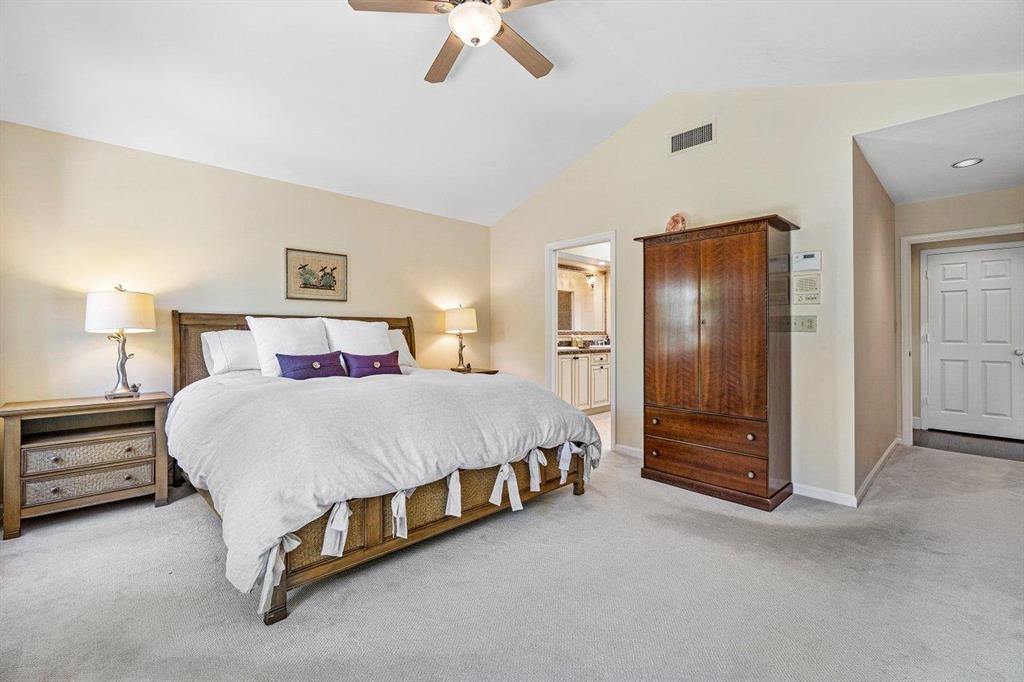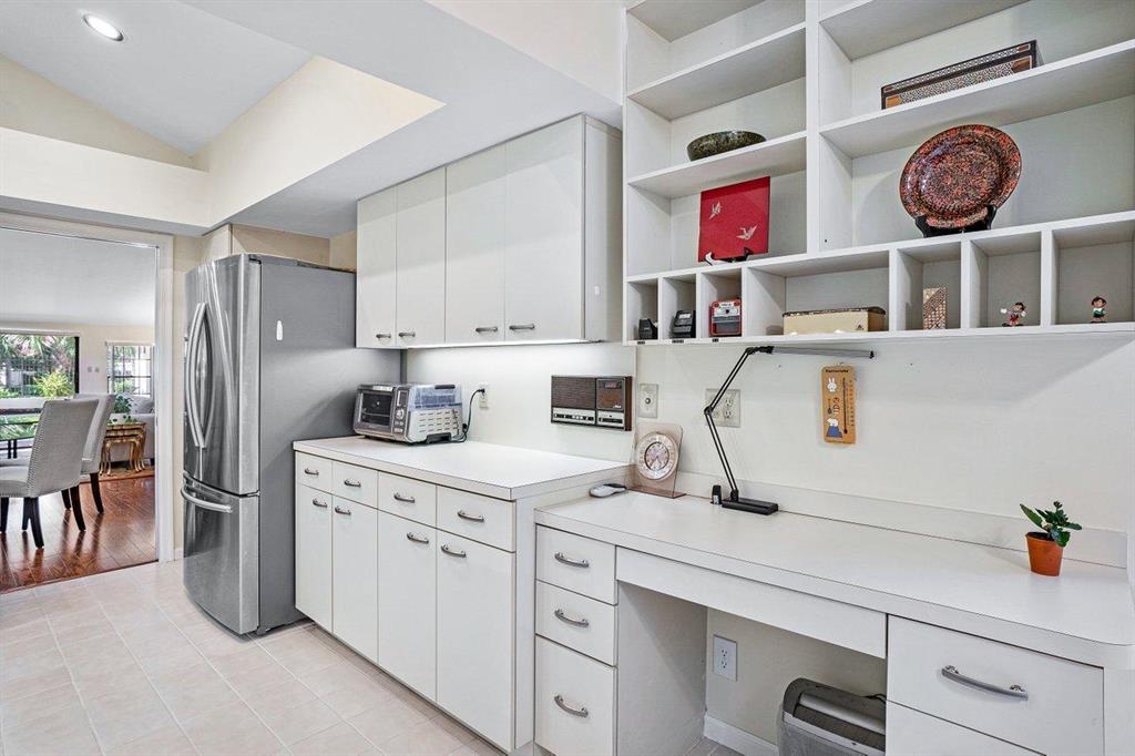 This home shows beautifully! Rarely available lakefront 3BR Cayman model offers a bright open floor plan, split BR's, family room, formal living & dining room. Volume ceilings & skylights bring an abundance of natural light. Dramatic floor to ceiling fireplace. Open kitchen w/ Samsung SS appliances (2017), breakfast bar & built in work space. Master suite offers vaulted ceilings, lake & patio views. Beautiful master bath w/dual sink granite vanity, soaking tub & separate spa like shower. Tropical lushly landscaped courtyard entry leads to your private backyard patio & greenspace perfect for added outdoor living space and entertaining.
