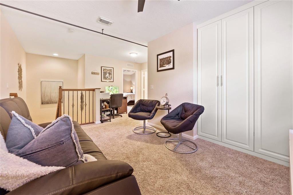 This townhome has been impeccably maintained and cared for. Featuring 2 bedrooms plus additional spacious loft that can easily be transformed into a third bedroom if needed. Upgrades include stainless steel appliances, upgraded kitchen cabinetry, Ring doorbell, upgraded railings and fans, fixtures and extra built in closet in loft making third bedroom conversion an easy task. Master suite boasts walk in closet with custom built ins. Exterior features accordion shutters for convenience and stress free ease.