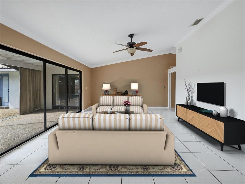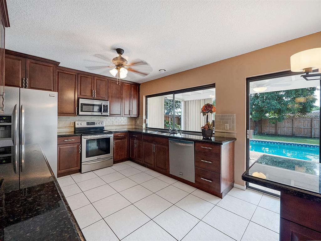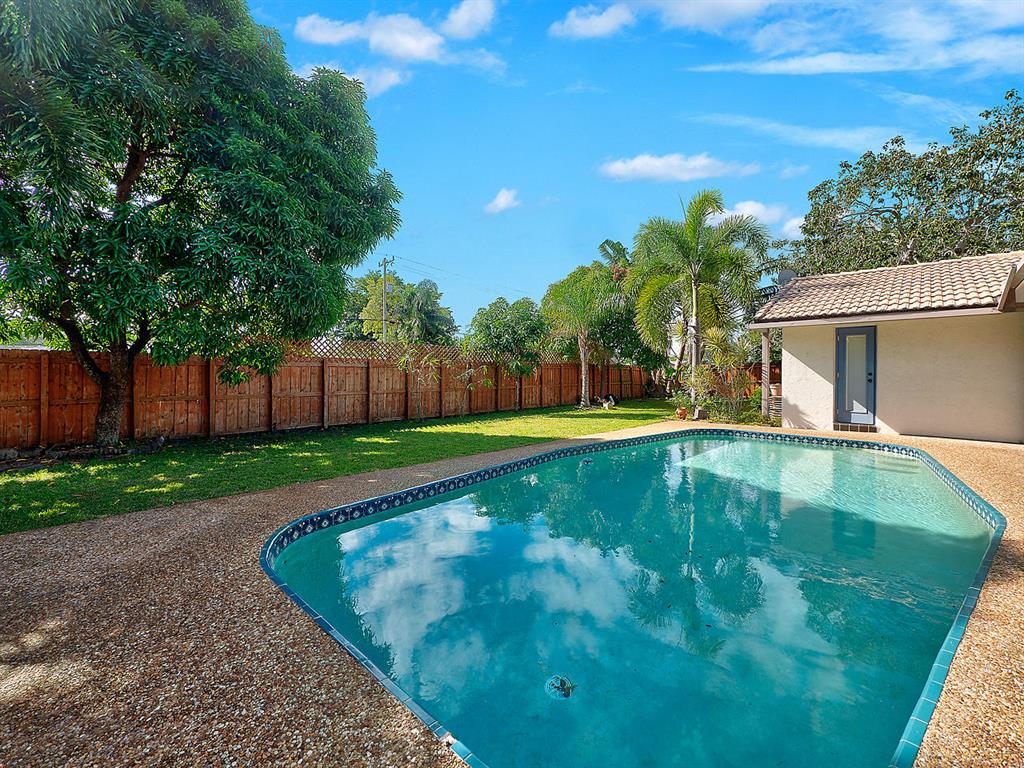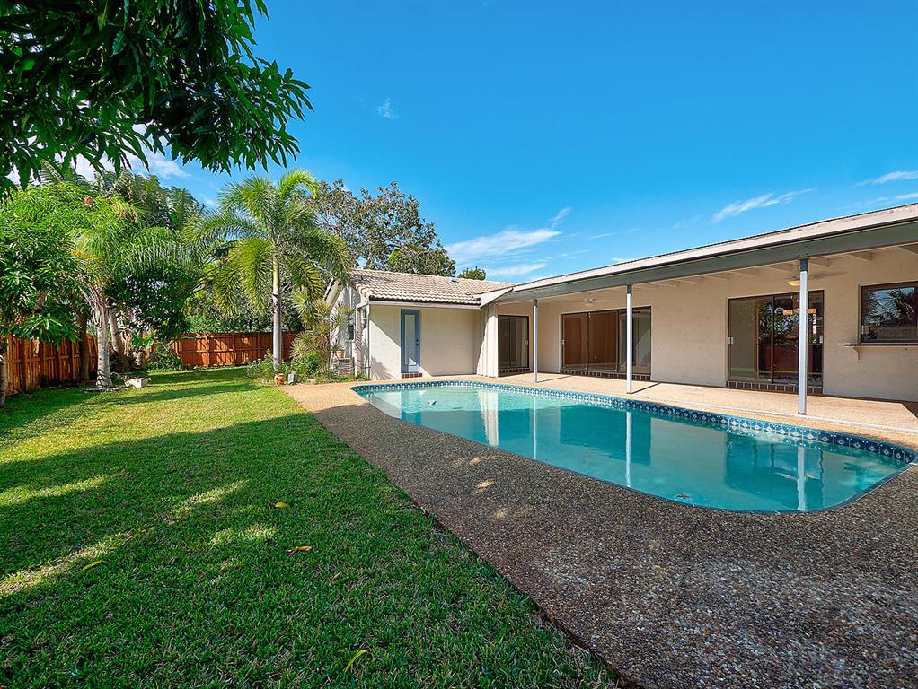 Fantastic Boca/Timbercreek pool home with circular drive - 4 BR 2 BA, stunning updated kitchen and baths with spacious living room and family room. Boasting vaulted ceilings, crown molding, private fenced yard with no rear neighbors, large bedrooms and master en-suite with large walk in closet. Timbercreek residents enjoy two beautiful lakefront parks, with gazebo, benches, wooden pier walkway onto lake, basketball courts and wonderful children's playground. Home is close to shopping, A+ schools, library, I-95, Turnpike, all three major airports and a short hop to the ocean. Come visit this lovely home today!