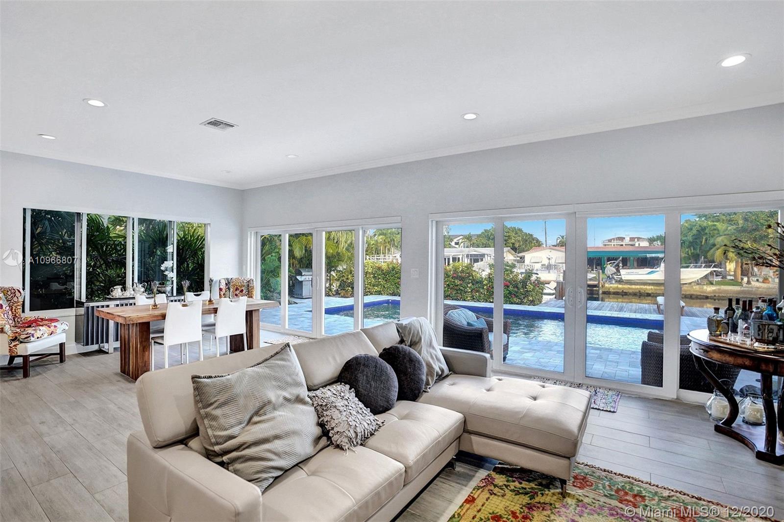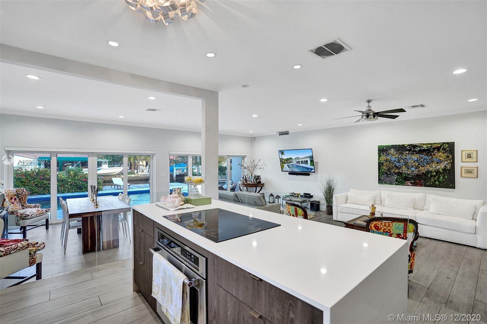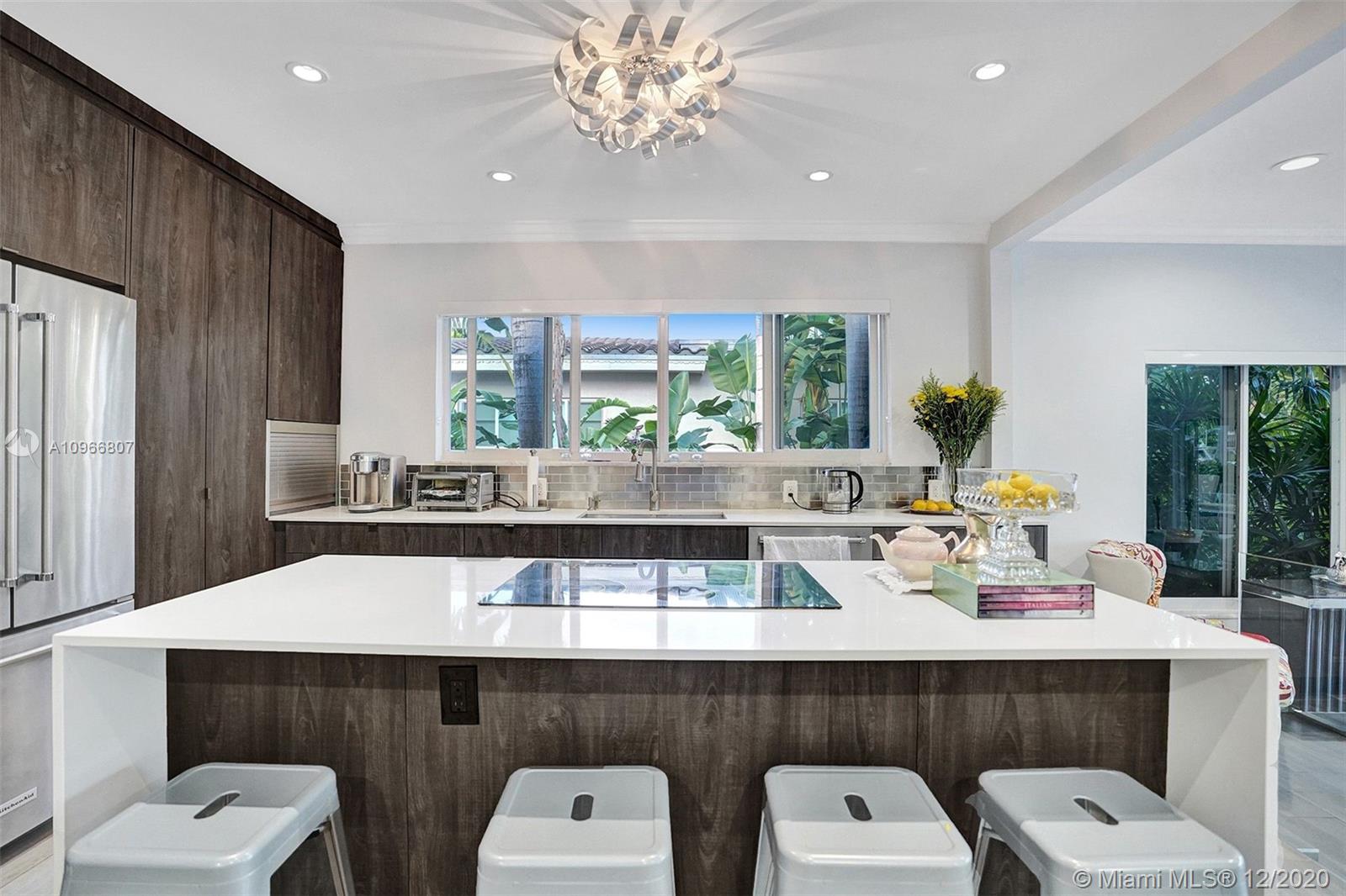 Enjoy ultimate waterfront living in this contemporary, picture perfect pool home in the gated community of Keystone Point. Located on most desirable Island 5, this property is on a quiet cul-de-sac street & offers 75FT of water frontage w/a private boat dock & no fixed bridges to the open water! This custom residence boasts 4 bdrms (w/possibility of a 5th room/office), 3 baths, 3000 SF & huge 2 car garage. Property offers a completely updated interior w/an open floor plan & features wood style porcelain floors throughout, new kitchen, all new bathrooms, & impact windows and doors. Large master suite w/2 walk-in closets & amazing views to the pool and water. Tranquil backyard offers a large pool overlooking the canal. Perfect location, close to Bal Harbour shops, beach, restaurants & more!
