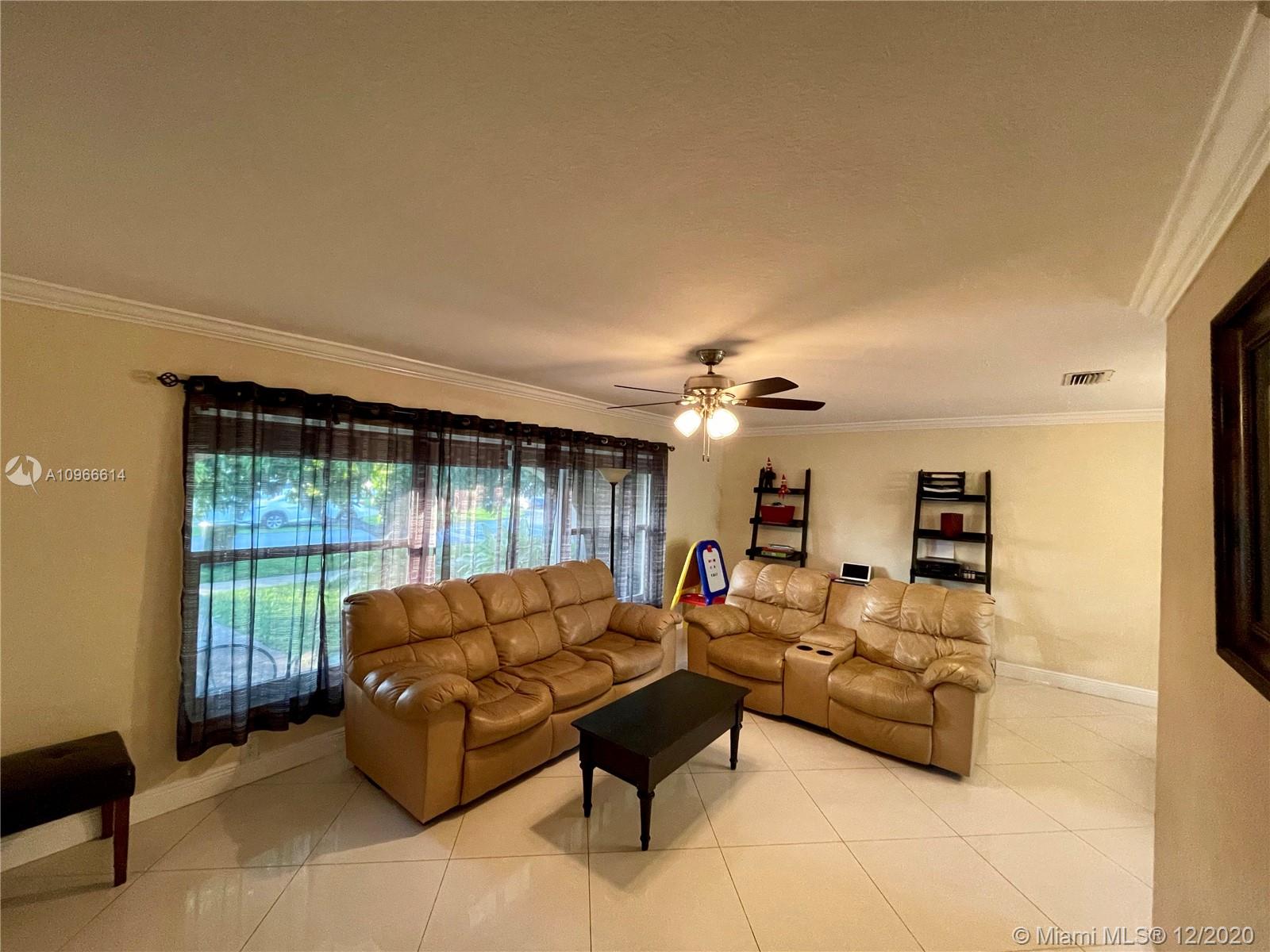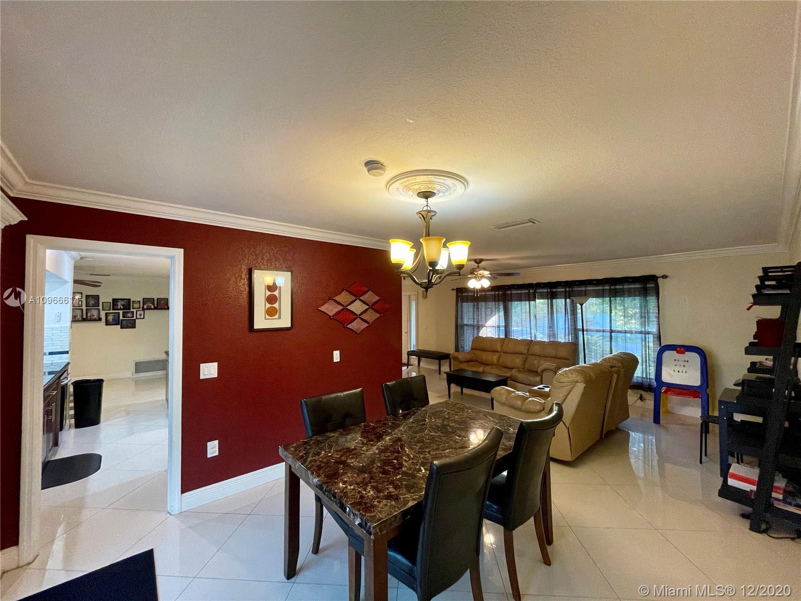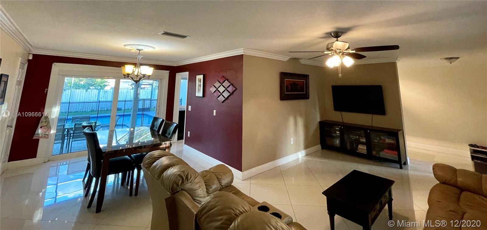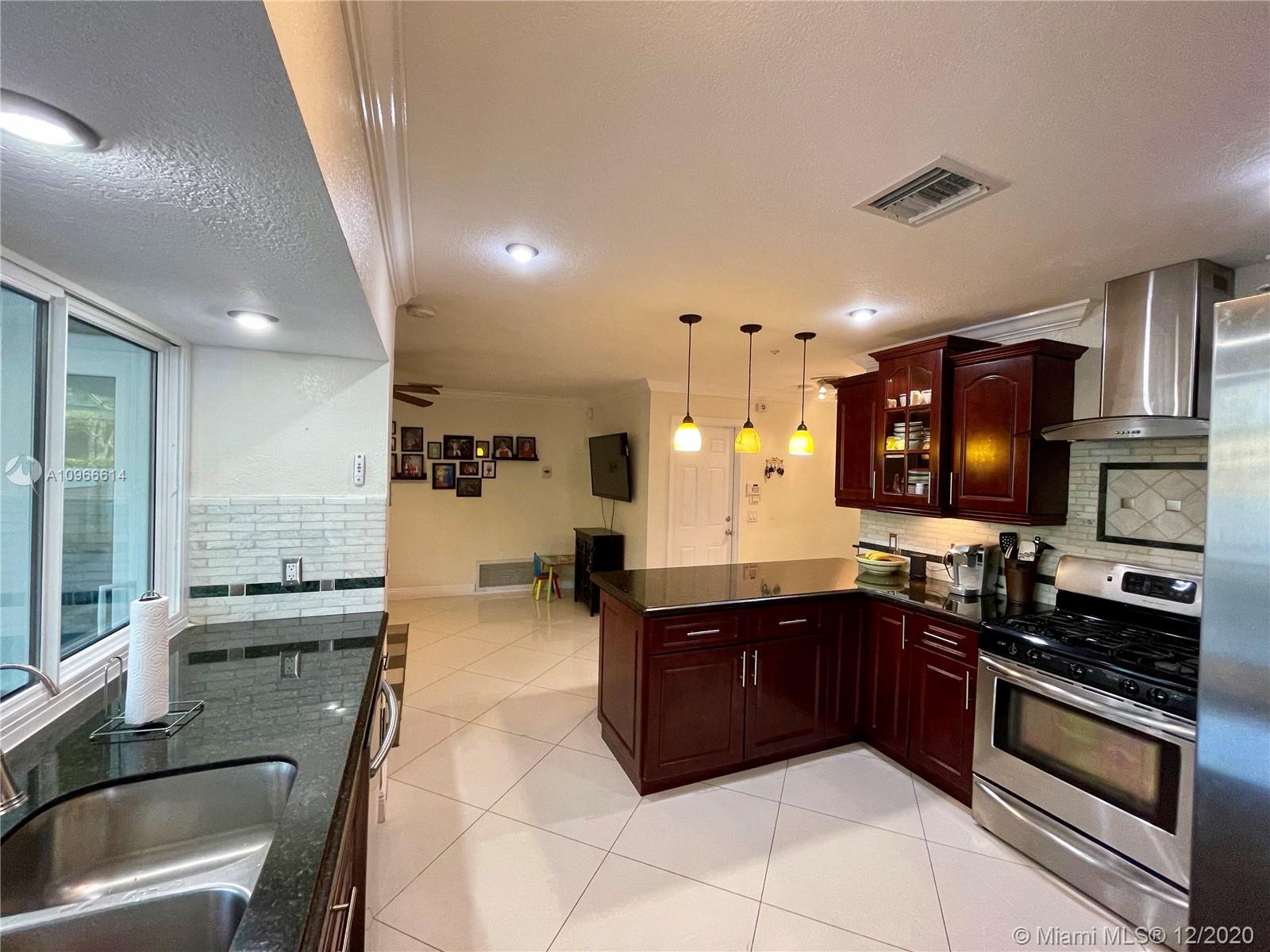 Porcelain tile floors throughout. Layout is perfect for multi-generational families. Bathrooms completely renovated with upscale design.Gourmet kitchen has SS appliances, gas stove, Wine fridge, and a pass through window over the sink. Amazing pool views from most of the house. Completely removable pool fence, pool had DiamodBrite. RainSoft system, roof is about 3 years old, and the whole house has all impact windows and doors, **Most (not all) windows and doors are Miami-Dade Certified and covered in a transferable, lifetime warranty! There's a great mango tree, room for a boat or RV, sprinkler system with a timer. Wired with an ADT System with cameras. Great location, less than 10 min. from Target, Publix, malls, dog parks, playgrounds, great schools, daycares, and places of worship.