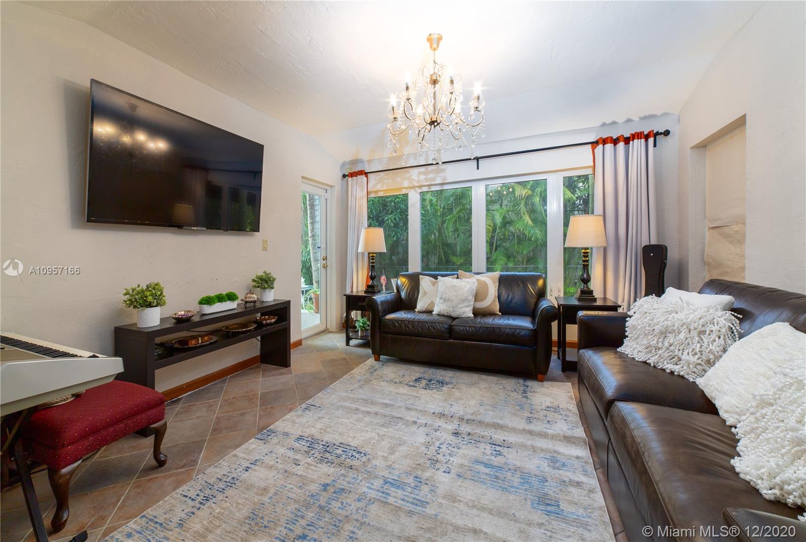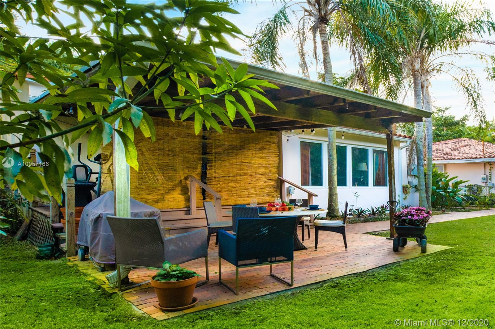 Vintage Coral Gables gets a charming contemporary makeover in this two bedrooms and two bath spacious home tastefully remodeled with newer roof and impact windows. All wood floors throughout add contemporary appeal to the well distributed floor plane featuring spacious living room, den with view to the garden, and formal dining perfectly located to interact with the updated open kitchen with granite countertops and stainless steel appliances. The enclosed private backyard is enhanced with mature trees, and a nice cover terrace perfect entertain family and friends. Double height car garage with lots of storage space. This inviting home nests on a beautiful tree-lined street in the prime of Coral Gables, close to all the shopping, dining, and all Florida lifestyle conveniences you desire.