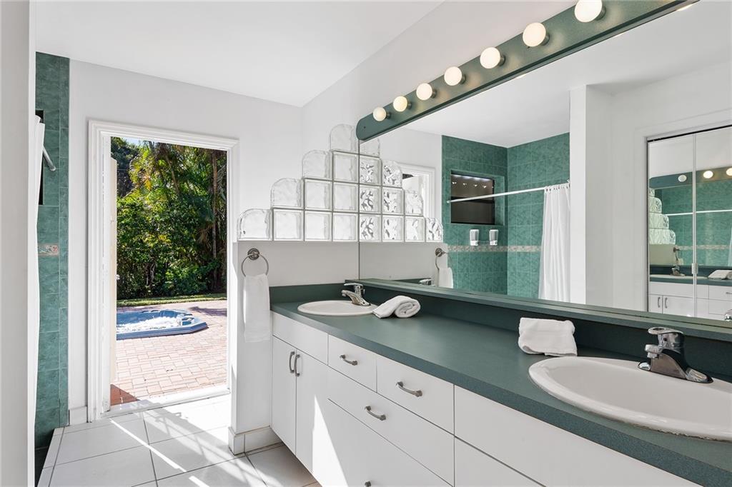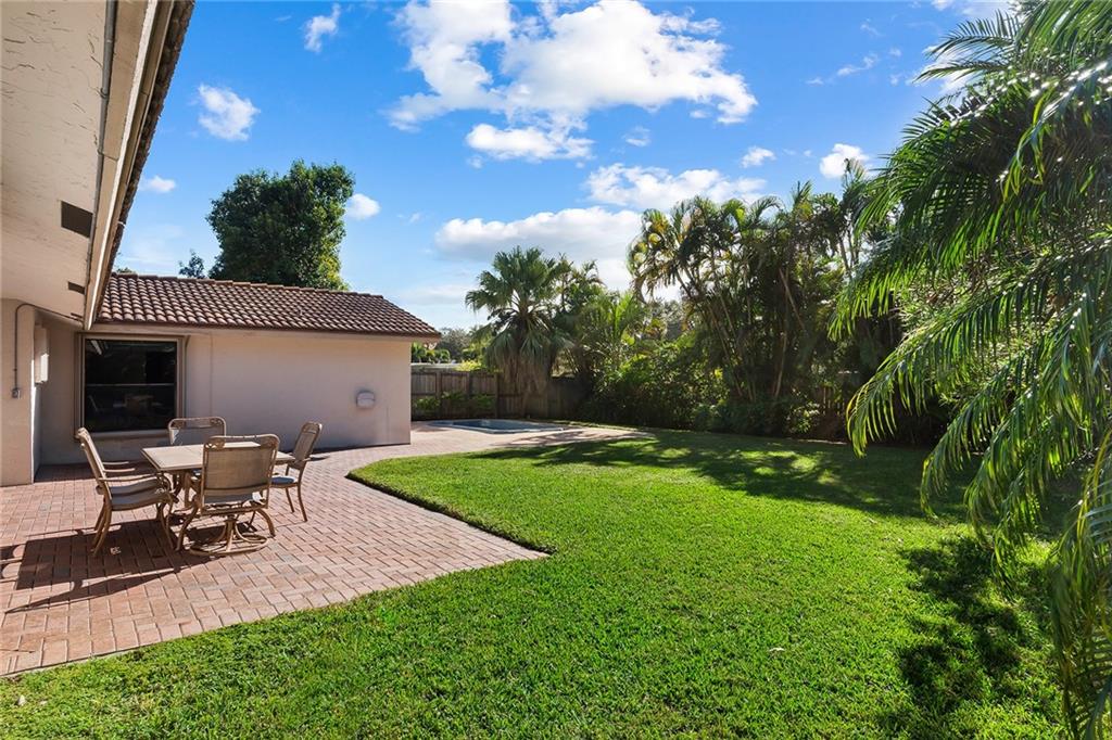Once inside the coded front gate you'll immediately feel the ULTRA privacy of this property affords! Well built 4 bdrm/2 bath home has a superb floor plan & awaits your cosmetic touches!! Grand living/family room, large eat-in-kitchen, formal dining room, laundry room & oversized 2 car garage. A private hallway leads to the master bdrm w/walk-in closet & ensuite cabana bath; 3 additional bedrooms share a large common bathroom. 4th bedroom currently used as an office/den & has lovely French door entry. The spacious & welcoming kitchen is easily accessed by laundry room, garage & backyard. The HUGE fully fenced property has an inground hot tub, spinkler system, mature foliage & lovely green space! Paver driveway, walks & patio complete this compound. 2002 Barrel roof/Accordion Shutters /ADT