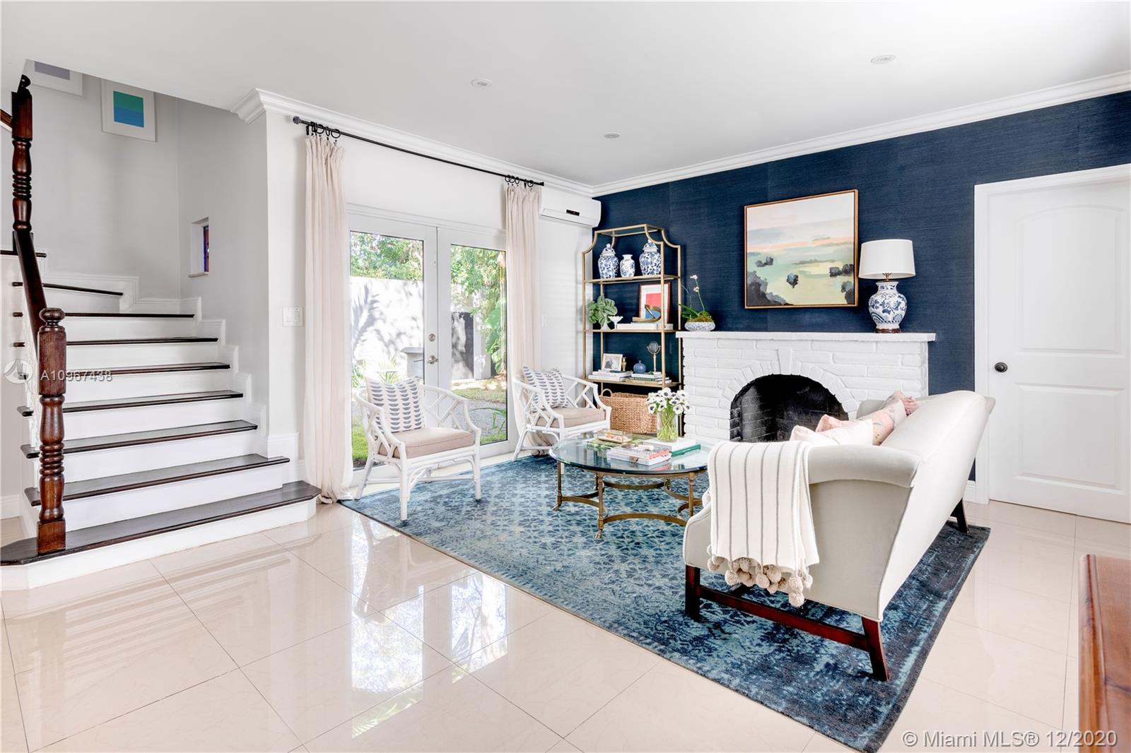 One of the most charming houses in Miami Shores. This two-story home, built in 1938, is nestled under 200-year-old oaks and has an inviting, traditional feel, yet all the modern luxuries. Lush and meticulous landscaping provides privacy and shade to the different outdoor living spaces, including an upstairs bedroom veranda. Light flows into every room, highlighting the original features of the home. The master bedroom, nursery or office, and living room open to a magnificent courtyard with space for entertaining or a future pool. The detached two-car garage has a full bathroom, which makes it a great space for an office. This quiet street is a short walk from downtown Miami Shores.
