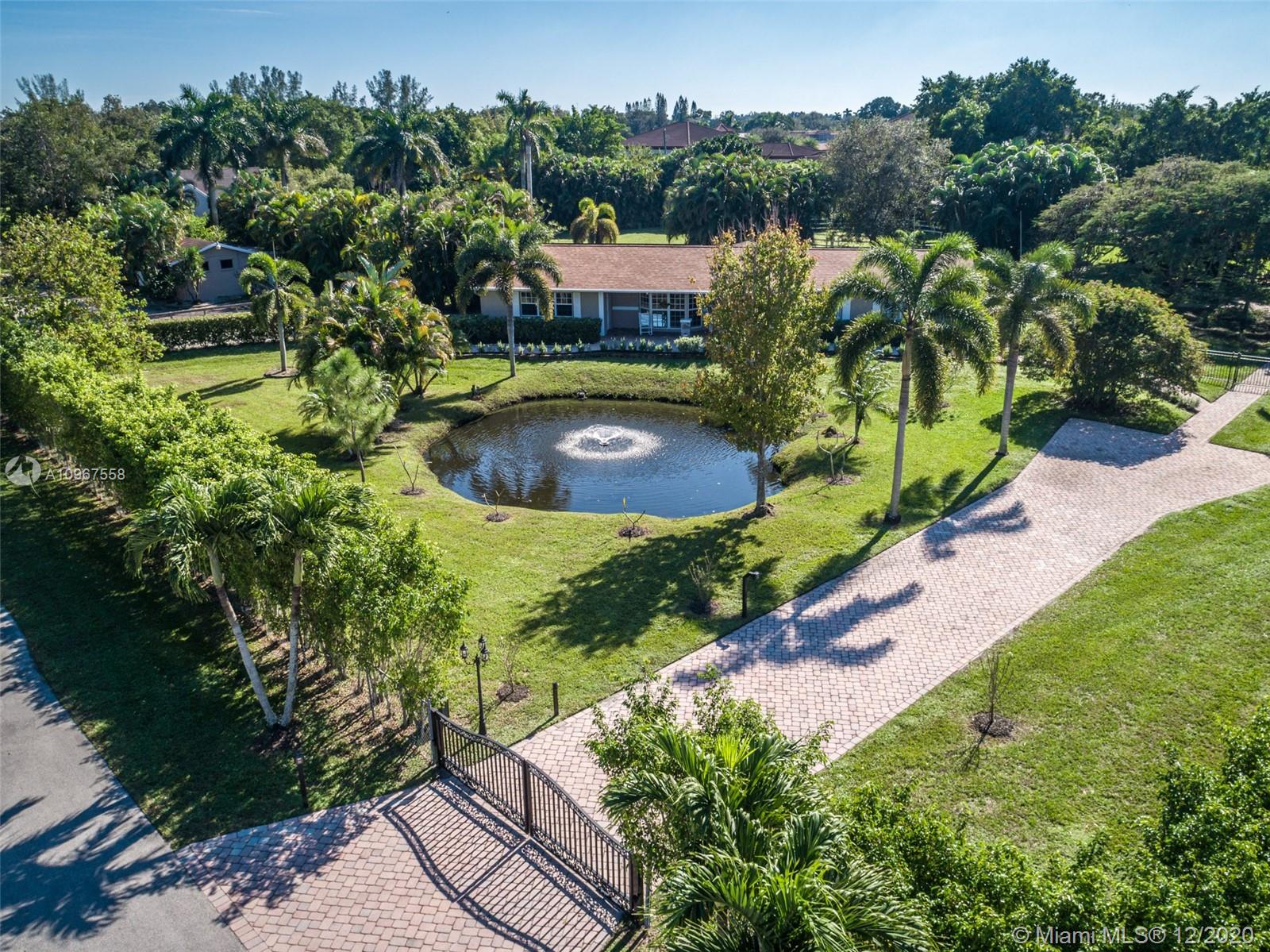 This charming gated home nestled on over 2 tranquil acres is a unique hidden gem! Located in Sunshine Ranches, a prestigious equestrian community consisting of farms alongside mega-mansions. Completely & tastefully remodeled! Stunning gourmet-style kitchen has cooking island/snack counter, wood cabinets, stainless steel appliances, beautiful marble counters, pantry. Enormous master suite was originally 2 rooms. Add the wall back or convert garage for additional bedroom. Luxury master bath will not disappoint with separate tub/huge shower. Crown moldings. Impact French doors. AC 2 years. Barn also has a private bedroom, 2 half baths adjoining. The property is truly incredible with a separate pasture, enormous party pavilion, fruit trees. Sparkling pool/spa resurfaced. New keystone patio.