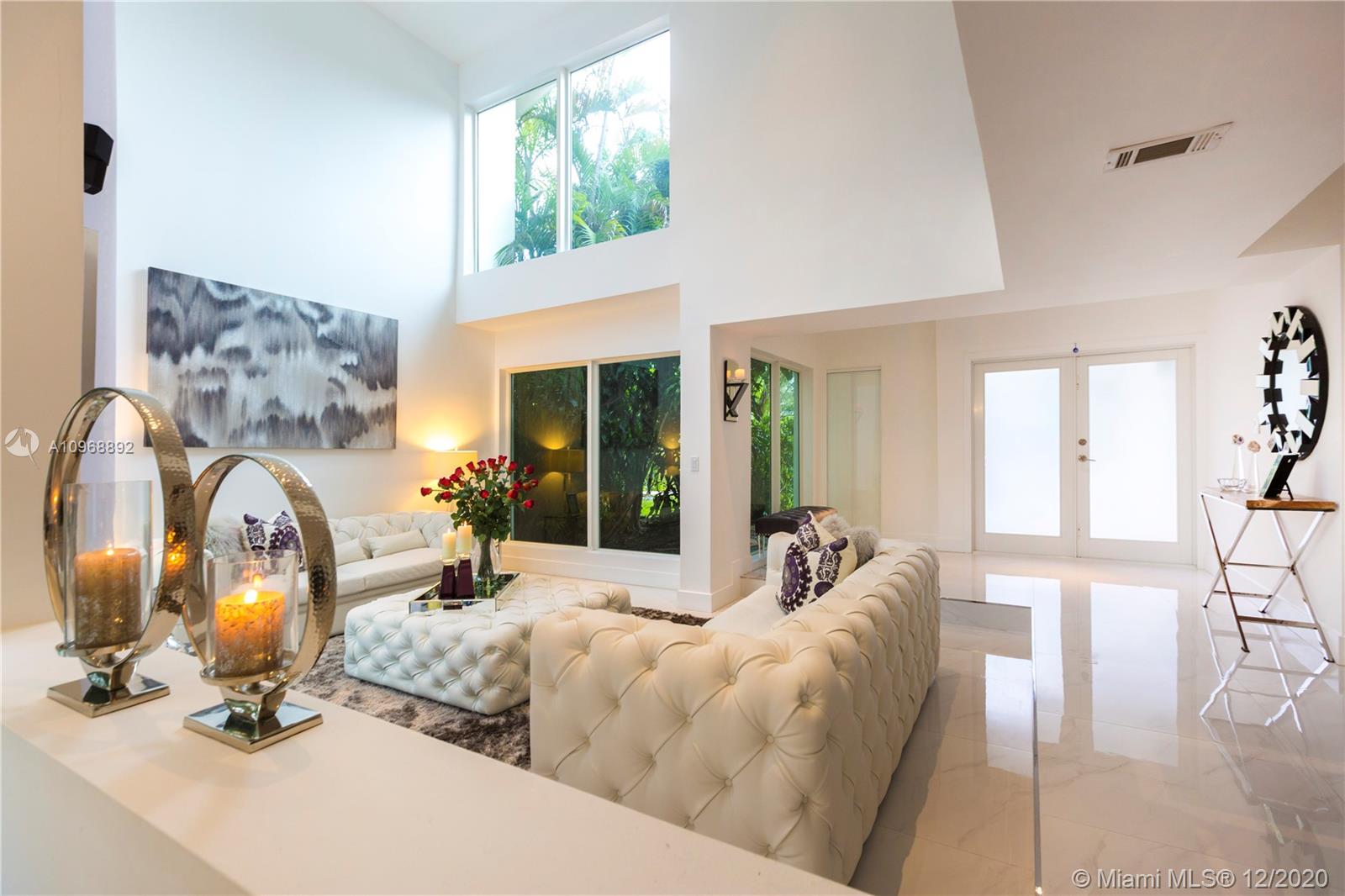 Bright, open and airy, best describe this gorgeous 4-bedroom 3-bath home in Coral Gables. Beautifully updated, with more than $200k in renovations. One bedroom downstairs and three upstairs, open plan Italian kitchen with high-end appliances. 16 foot ceilings in the living room, and a lovely floating staircase. The patio is perfect for entertaining and a beautiful trellis shelters you from the sun. Impact windows throughout, circular driveway and a one car garage. Centrally located just a short dive from UM, the Shops at Merrick Park, The Venetian Pool, and everything the Gables has to offer.