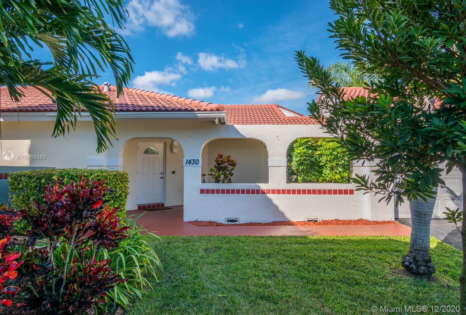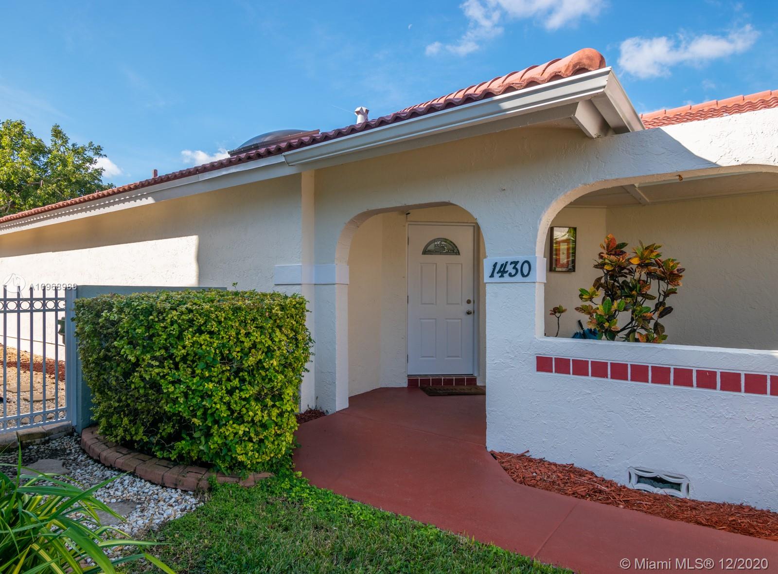 Enjoy outdoor living & beautiful garden views - your own private oasis! This beautiful 3 bed, 2 bath home features tile flooring throughout main living areas and high vaulted ceilings - perfectly light & bright! Kitchen features tile countertops, upgraded Bosch insta-hot under sink & whole home water filtration system. Enjoy the outdoors w/an extended covered patio perfect for BBQ and large fully fenced oversized yard! Accordion shutters for convenience. Great location close to excellent schools, shopping, dining, parks, highways & transportation!