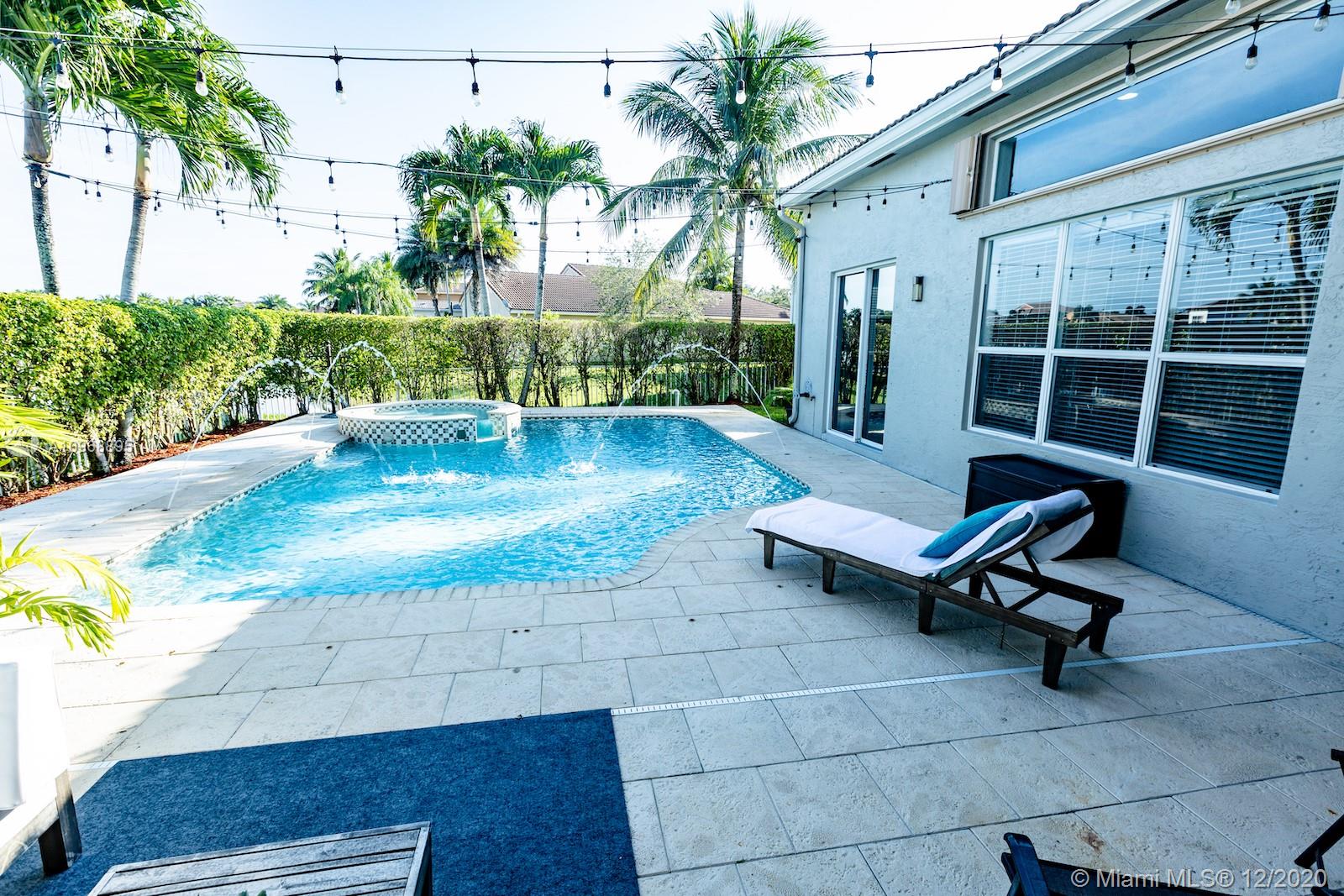 Stunning Cristina Regal Collection model located in the exclusive Sunset Lakes community. Impeccably updated 5-bedroom, 3-bathroom 2.5 car garage home with an array of features including volume ceilings, beautifully upgraded kitchen, luxurious master bathroom, built-in sound system (indoors and outdoors), recessed lighting, and stacked stone wall in the family room. Incredibly well-kept backyard for entertainment and relaxation with oversized pool and jacuzzi cascade waterfall overlooking the lake. Owner-occupied, easy to show. 24 hours noticed required.