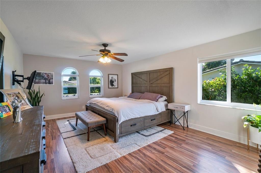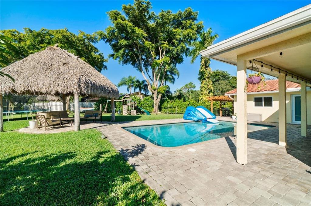 THIS IS A MUST SEE! Beautifully appointed 4-bedroom, 2-bathroom POOL home with IMPACT WINDOWS! Welcome home to your COMPLETELY REMODELED and OPEN FLOOR PLAN, located on a HUGE CORNER LOT in The Lakes Incredible features include a GORGEOUS NEW KITCHEN w/ GRANITE COUNTERS, S/S APPLIANCES, LARGE ISLAND, plus a DRY BAR * Polished TERRAZZO FLOORING throughout w/ wood laminate floors in master bedroom * Gorgeous REMODELED SPA-LIKE BATHROOMS, both w/ ACCESS TO PATIO & POOL * Enjoy relaxing by your oversized pool w/ plenty of room in the private fenced yard for fun * almost 1/3 of an ACRE * WATERFRONT with your TIKI HUT, PERGOLA and a COVERED PATIO * BUILT-INS IN ALL CLOSETS * LED LIGHTING * FRUIT TREES & ORCHIDS * NEW ROOF 2018 * A/C 4-YRS. * W/H 2-YRS. * NO HOA * and a Perfect Central Location!