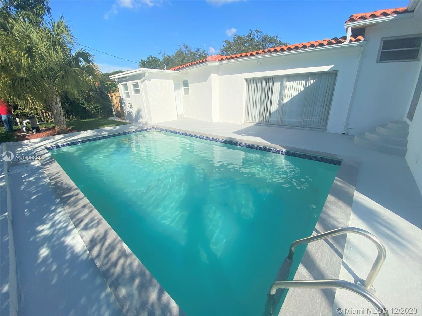 Huge pool house with 4 bedrooms 3 bathrooms ( can be 3/2 plus a 1bed/1bath apartment). A lot of upgrades like quartz kitchen countertops, stainless steel appliances, extra-large ceramic tiles, 5 tons A/C, freshly painted, new bathrooms, new electrical panel, new water heater, new landscaping. Very modern and elegant.