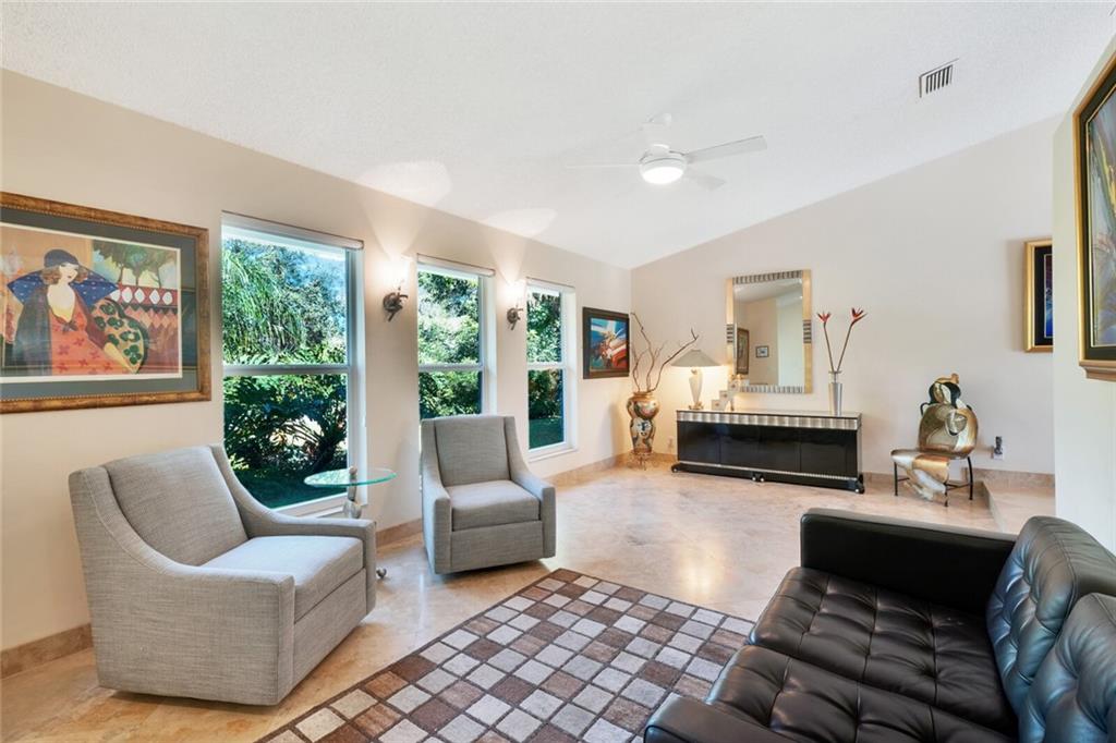 Updated 4/2 Contempory Home, split floor plan located on oversized Fenced Yard on a C-14 canal. Large Eat in Kitchen with custom picture window. Traventine floors, great school. Exclude fridge