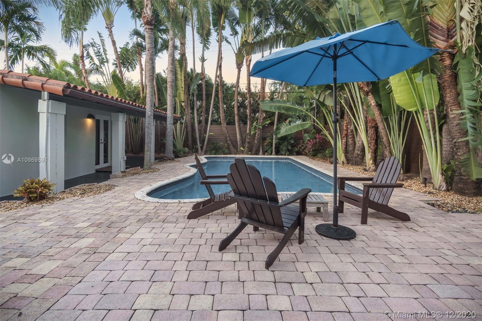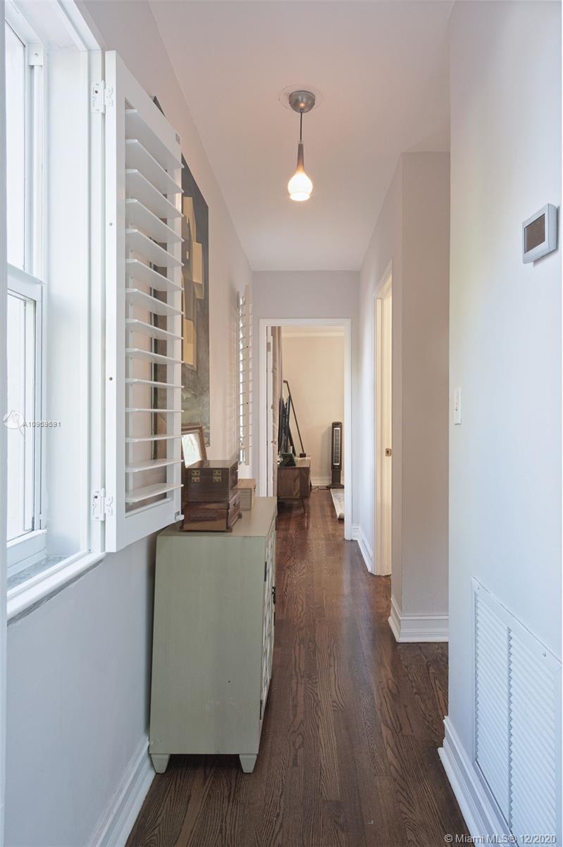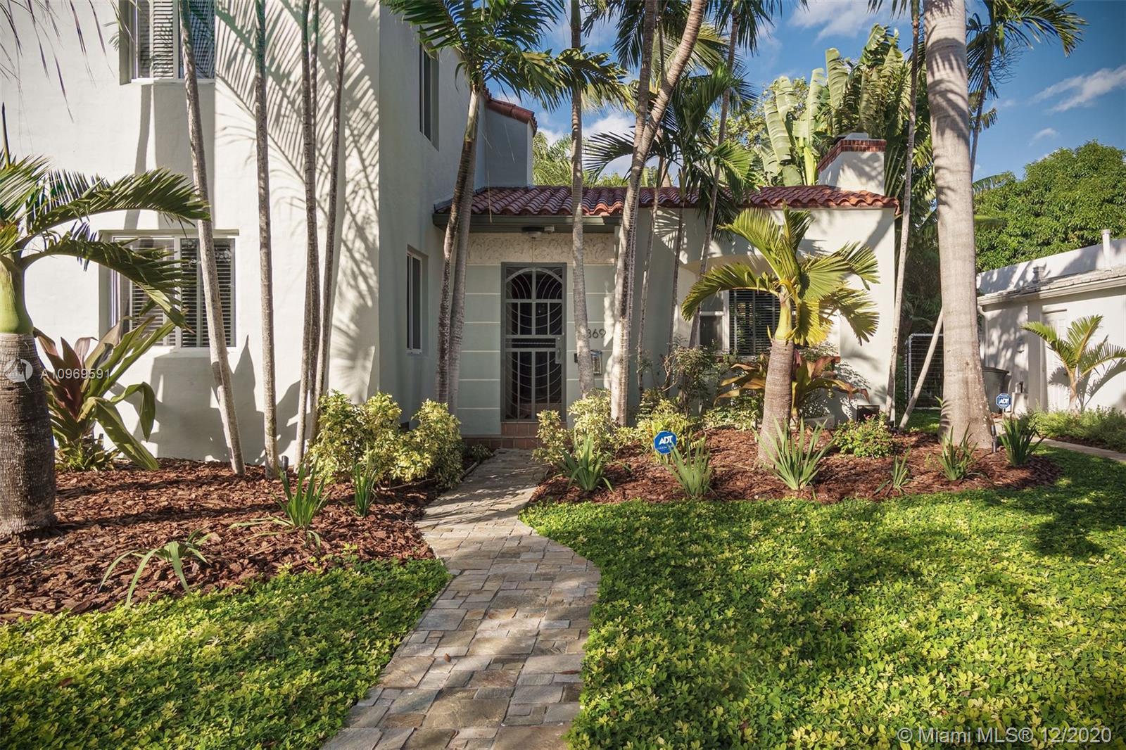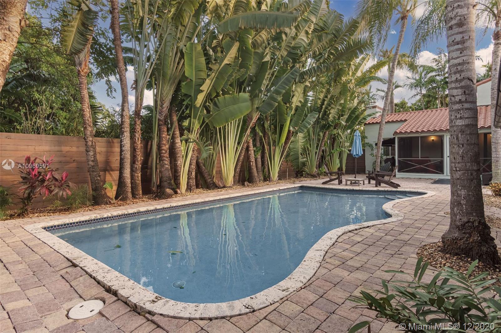 Beautifully updated Miami Beach Mediterranean pool home with guest house. Located on a quiet, tree-lined street, meticulously maintained & updated, the main house features vaulted ceiling with wood burning fireplace, wood floors, beautifully updated kitchen/dining room, powder room & bedroom suite. Upstairs features two bedrooms and one bath. French doors in Living room and Dining room lead to screened-in patio over looking the pool. Impact windows throughout. Natural Gas. Resort-like backyard- with mosquito control system- is landscaped with variety of palms & tropical plants, surrounding custom designed heated pool. Detached guesthouse includes 1BR/1BA cottage & studio. 20min walk/8min bike to beach. 2 blocks to Ritz Carlton residences. Walking distance to houses of worship.