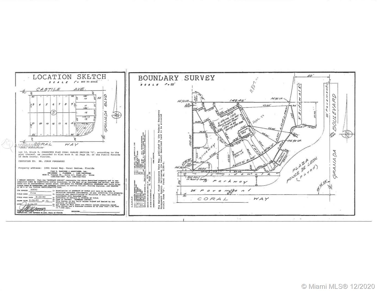New Listing. Sitting on a large, 11,750 ft. corner lot at Granada and Coral Way, this classic 1925 mansion is ready for a new family. Nestled under huge oaks and palms, this 5 bedroom/4.5 bath (4/3.5 in main house + maid's quarters) home has 3,451 sq. ft. and has charm and character at every turn. Foyer entry, with fireplace spacious living room with Chicago brick floor. The family room has French doors to a terrace and garden. Formal Dining room. The breakfast room and kitchen at the rear with access to a maid's quarters next to the carport. Upstairs find the master suite with three other bedrooms plus an outdoor patio. FIRM PRICE. Easy to show