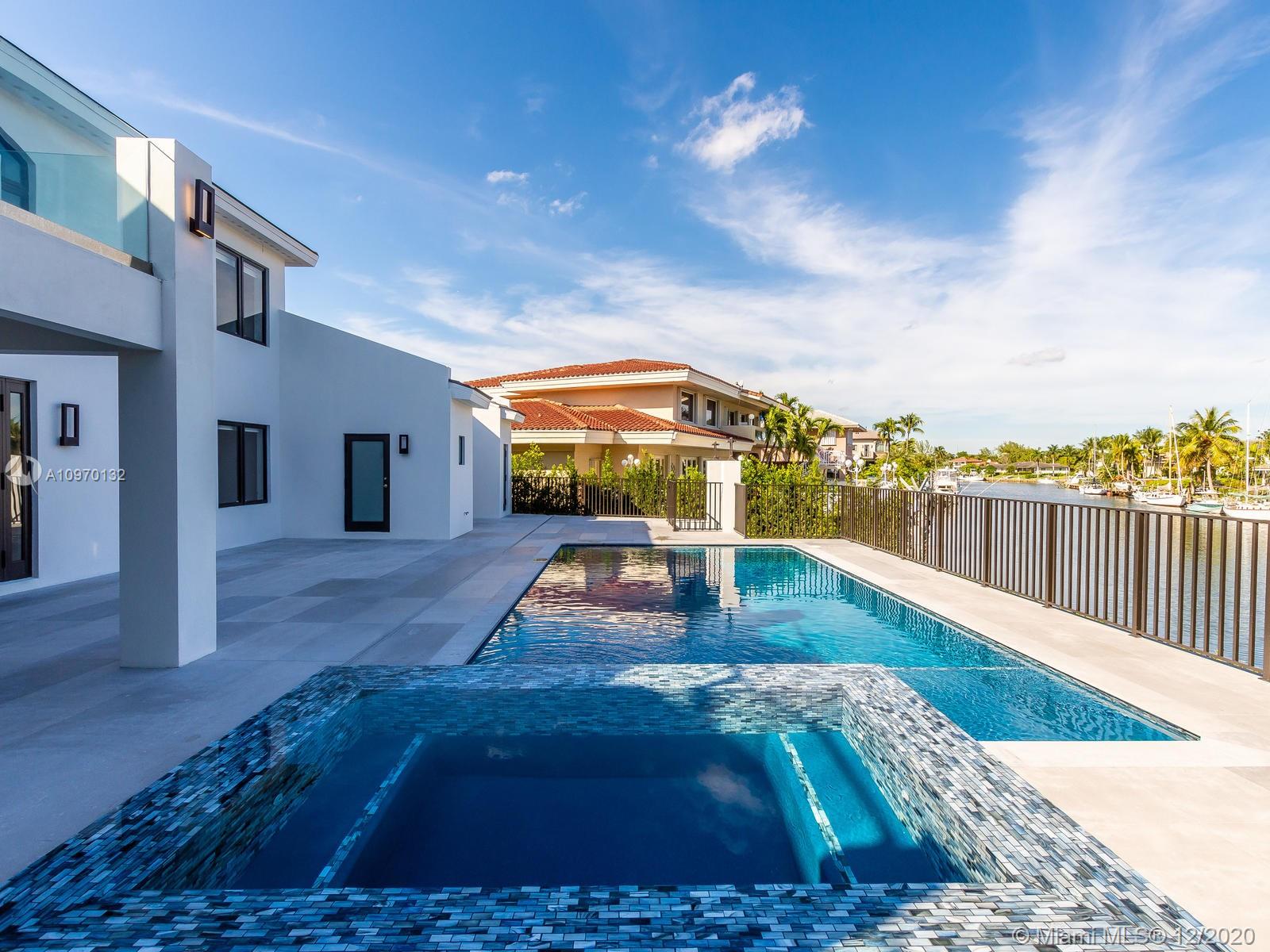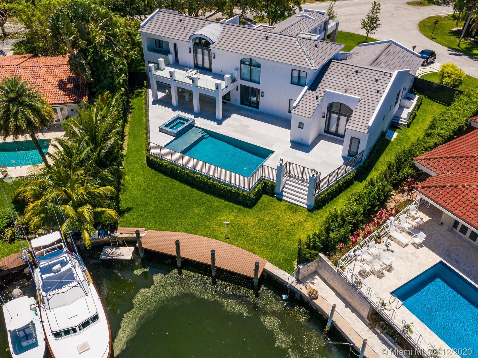 Modern masterpiece with 50’ direct ocean access in Gables by the Sea. 2019 all new fully reconstructed 5BD 6.1BA with office & master sitting room. Brand new dock, beach entry pool, infinity spa, full cabana bath, blue granite summer kitchen. Outstanding European kitchen w/full quartz island, Bosch, Subzero, Wolf top appliances. Enormous porcelain marble floors throughout. Solid wood stairs lead to the full 2nd floor Master Suite. Enjoy open waterway/pool views from expansive east facing balcony. Master sitting room w/wet bar can be dressing room/nursery/gym. Spa bath w/soaking tub, jets, rain shower showcased on mosaic marble. Highly elevated oversized .36acre corner lot in the walkable, friendly guard-gated Gables by the Sea with a neighborhood park & A+ schools & immediate ocean access