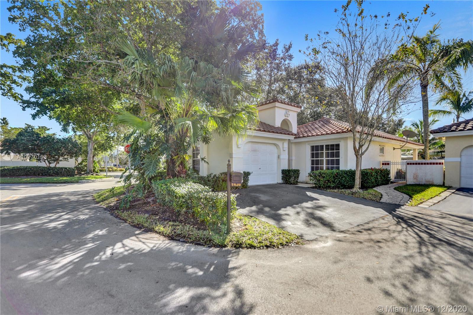 STUNNING CORNER LOT in Weston Country Isle Garden Homes. Entry Garden Walkway in this cozy 2bd/2bath 1 car garage with double drive way, single family home with a beautiful back yard. Completely new Tile Flooring!Brand New Electrical Stainless Steel Applicances. Remodeled walk in closet, accordian shutters! Roof was refurbished in 2006, has newer AC 2015. Close to Grade A Schools, surrounded by beautiful landscaping and lakes, perfect for family with pets....Proximity to local shops and restaurants..Just in Time for the Holidays..Hurry this wont last!