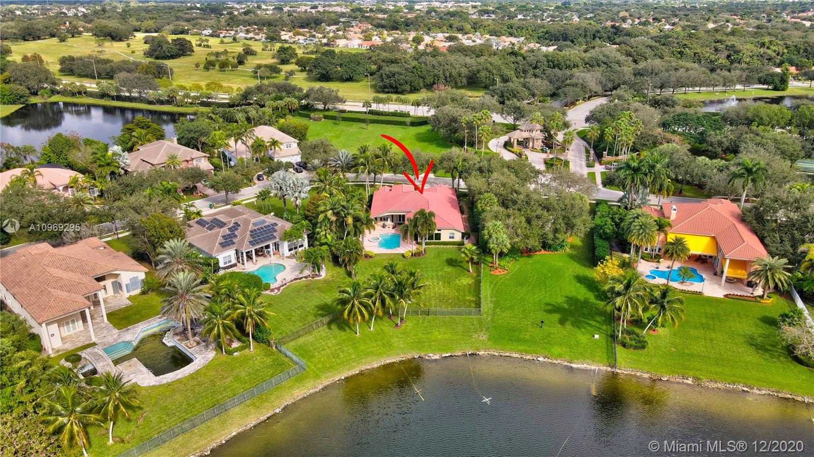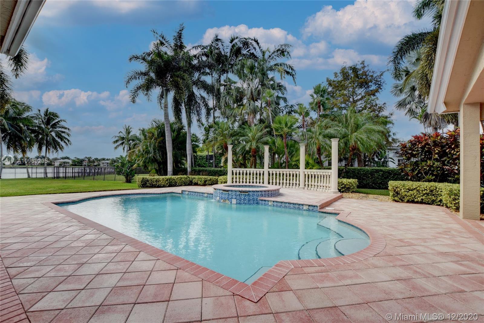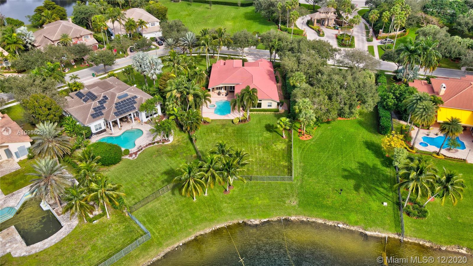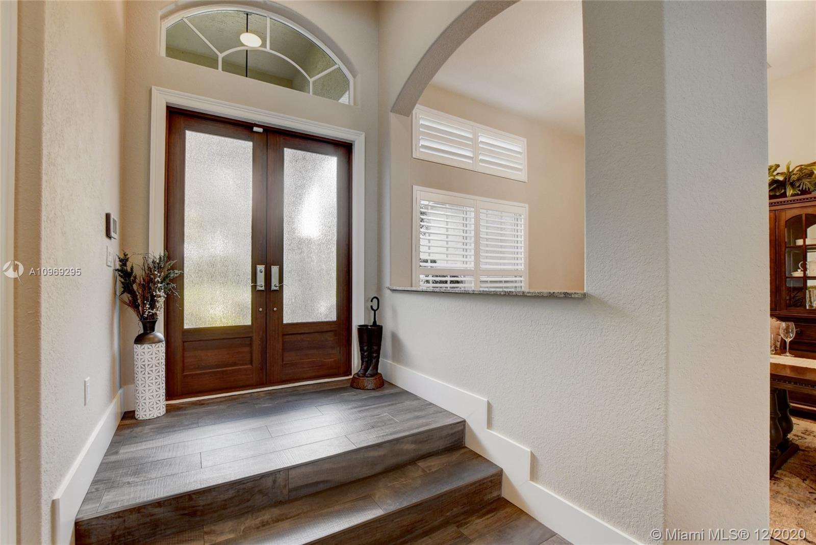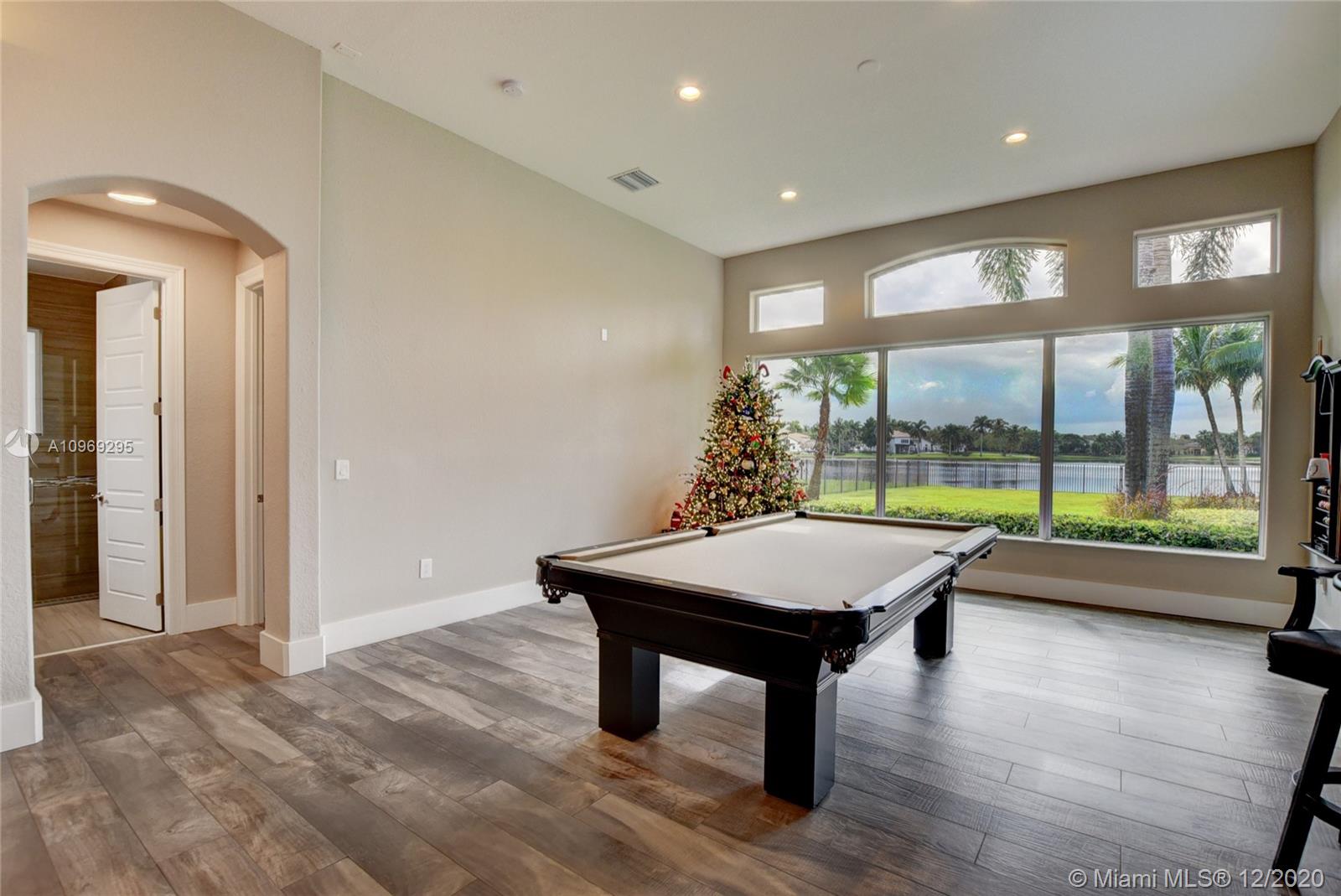Gorgeous lake view from this immaculate, completely remodeled 5 bedroom + dedicated office + great room/3 bath residence in guard-gated Long Lake Estates. Impact glass windows/doors showcase generous yard, salt system pool w/raised spa, & wide view of the lake. Meticulously maintained & tastefully updated w/high-end finishes: porcelain wood tile flooring w/new 7.25" baseboards, quartz bathroom countertops, undermount sinks. Newer roof (2007) w/Roof-a-cide treatment, New a/c's, new Rheem water heater, new LG washer/dryer and all new Samsung & GE Profile kitchen appliances. U-line wine fridge, Plantation shutters, customized shelving in all closets. 3-car garage w/impact resistant garage doors, higher horse power motors & app-controlled entry. Whole-house water filtration/softening system.