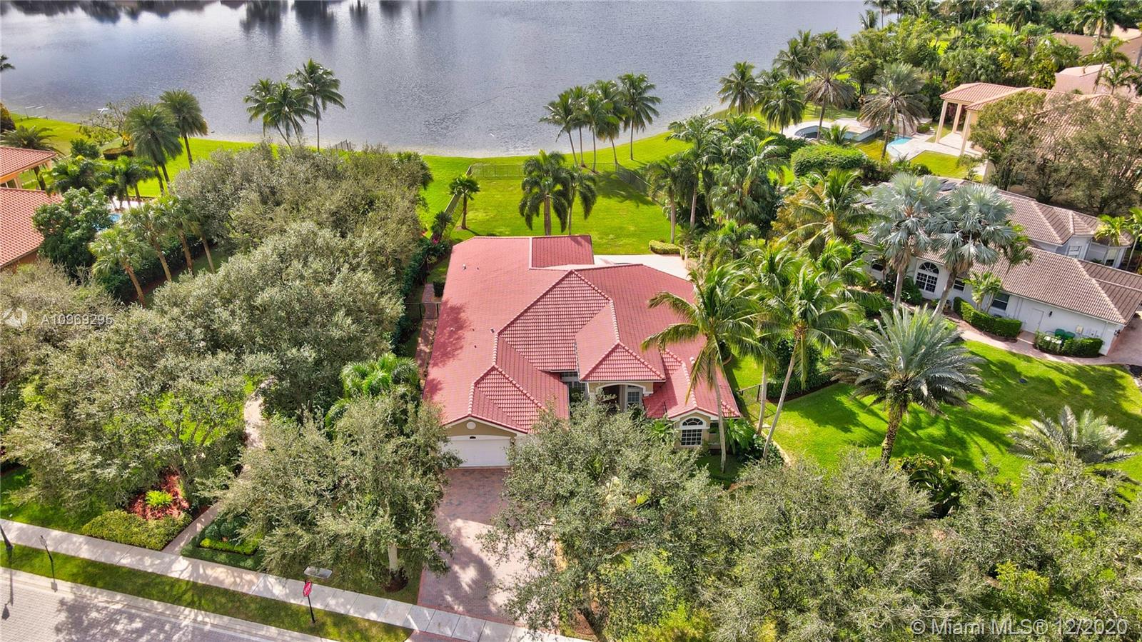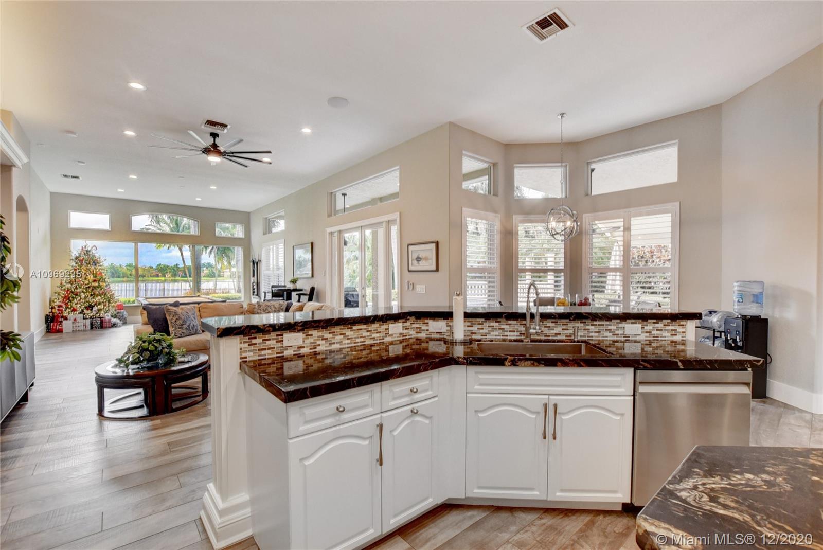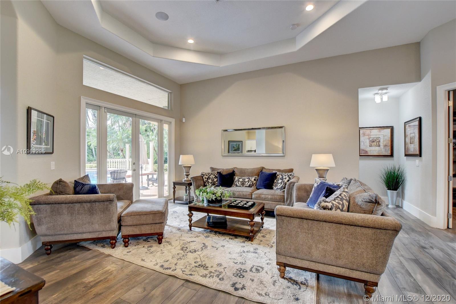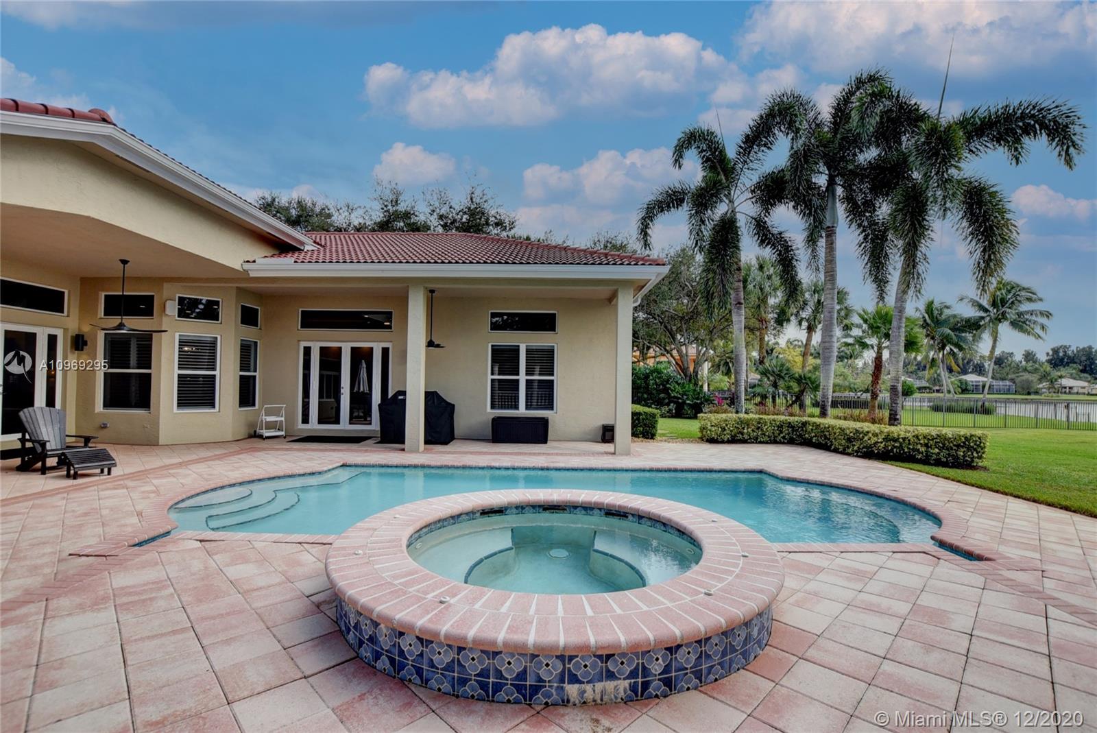 Gorgeous lake view from this immaculate, completely remodeled 5 bedroom + dedicated office + great room/3 bath residence in guard-gated Long Lake Estates. Impact glass windows/doors showcase generous yard, salt system pool w/raised spa, & wide view of the lake. Meticulously maintained & tastefully updated w/high-end finishes: porcelain wood tile flooring w/new 7.25" baseboards, quartz bathroom countertops, undermount sinks. Newer roof (2007) w/Roof-a-cide treatment, New a/c's, new Rheem water heater, new LG washer/dryer and all new Samsung & GE Profile kitchen appliances. U-line wine fridge, Plantation shutters, customized shelving in all closets. 3-car garage w/impact resistant garage doors, higher horse power motors & app-controlled entry. Whole-house water filtration/softening system.