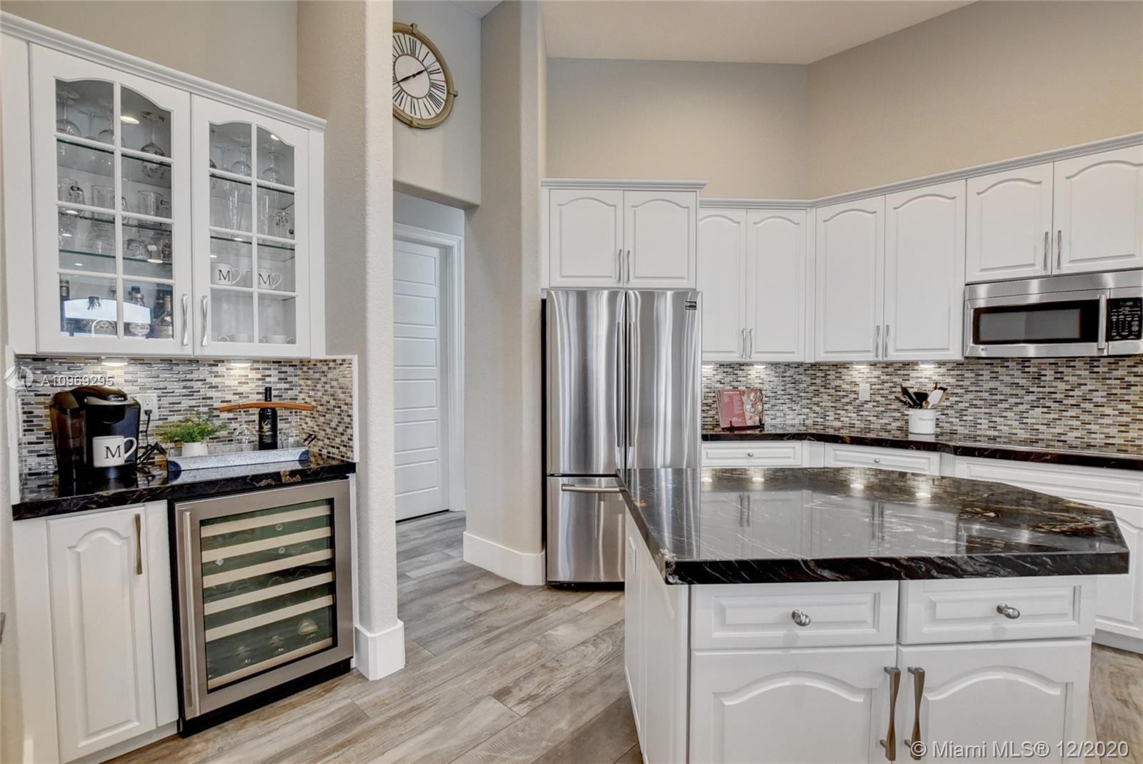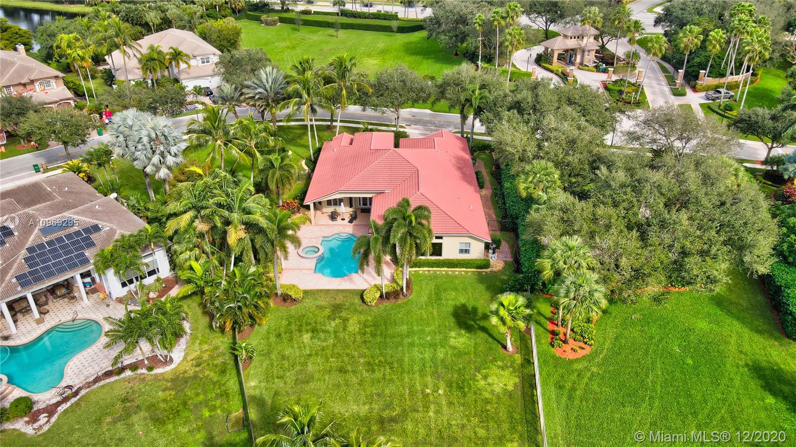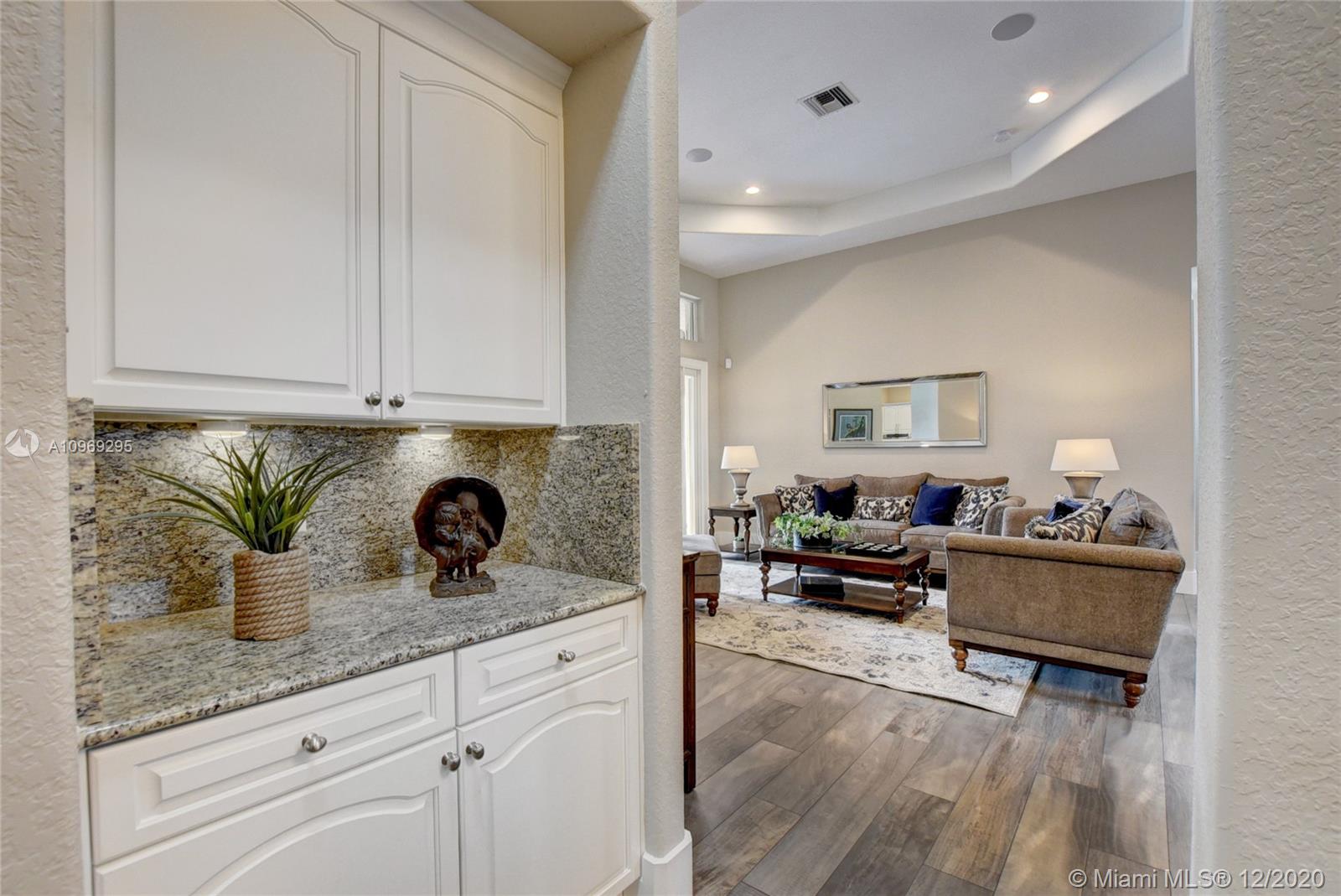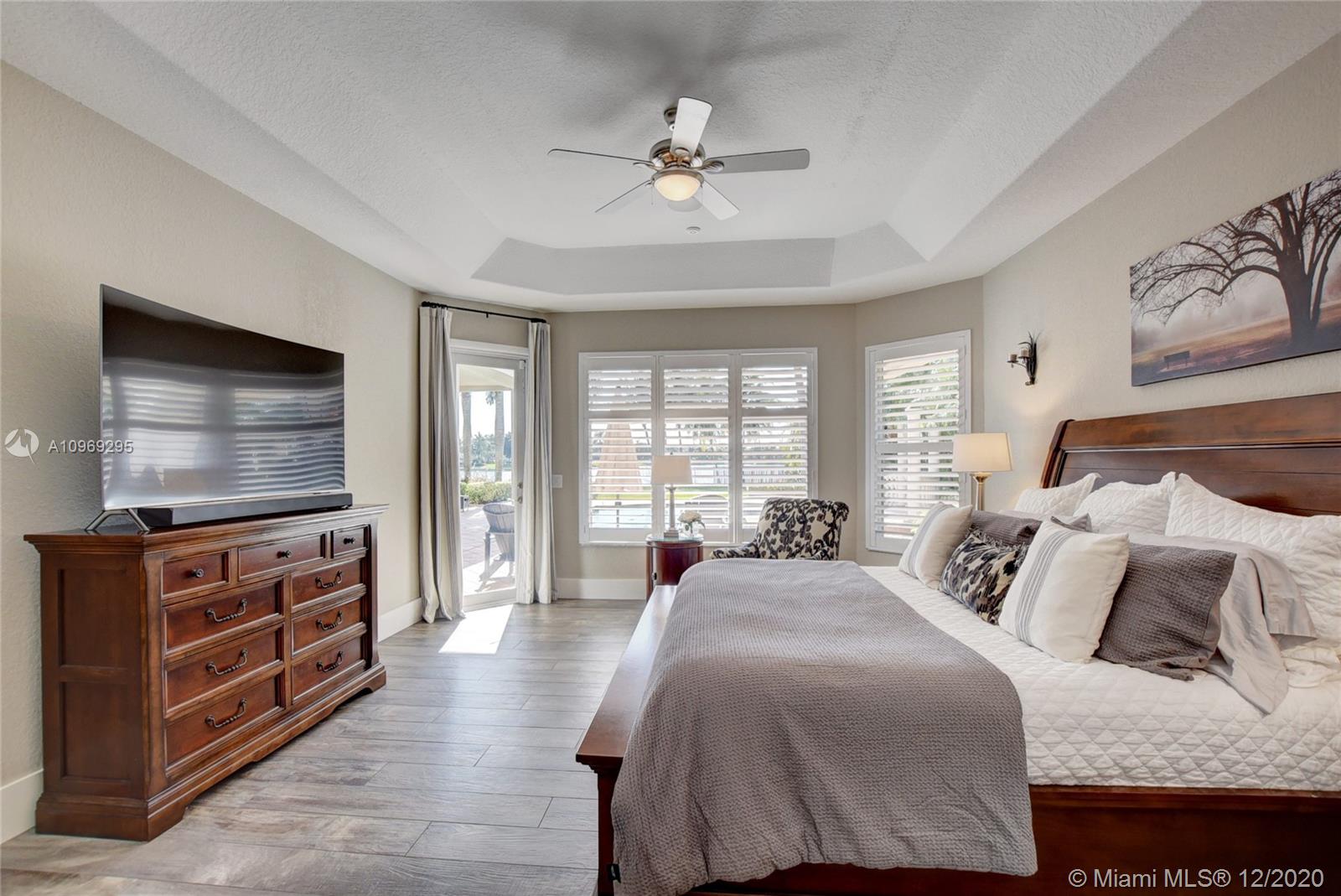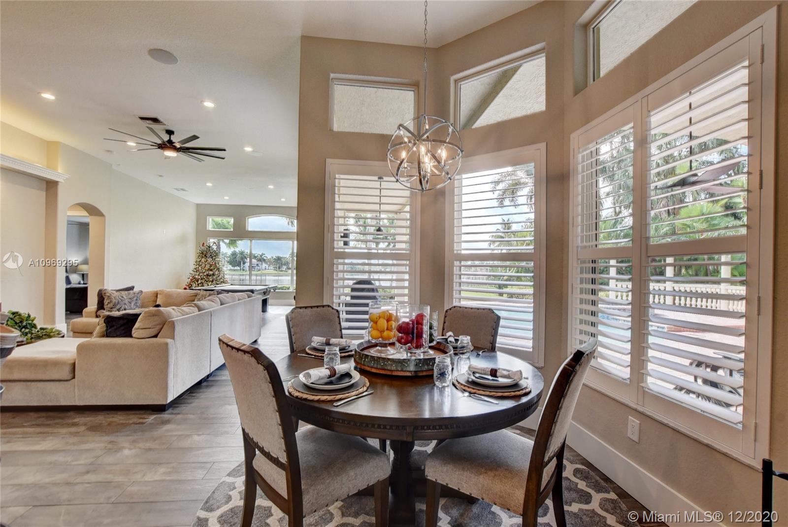 Gorgeous lake view from this immaculate, completely remodeled 5 bedroom + dedicated office + great room/3 bath residence in guard-gated Long Lake Estates. Impact glass windows/doors showcase generous yard, salt system pool w/raised spa, & wide view of the lake. Meticulously maintained & tastefully updated w/high-end finishes: porcelain wood tile flooring w/new 7.25" baseboards, quartz bathroom countertops, undermount sinks. Newer roof (2007) w/Roof-a-cide treatment, New a/c's, new Rheem water heater, new LG washer/dryer and all new Samsung & GE Profile kitchen appliances. U-line wine fridge, Plantation shutters, customized shelving in all closets. 3-car garage w/impact resistant garage doors, higher horse power motors & app-controlled entry. Whole-house water filtration/softening system.