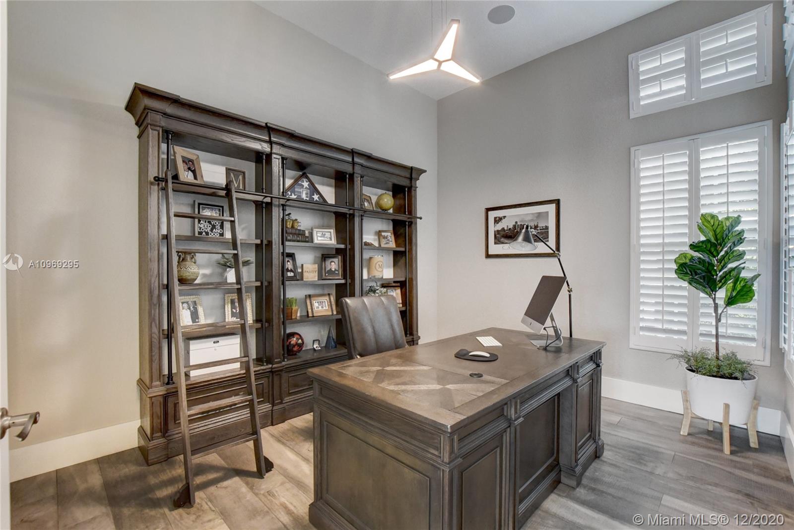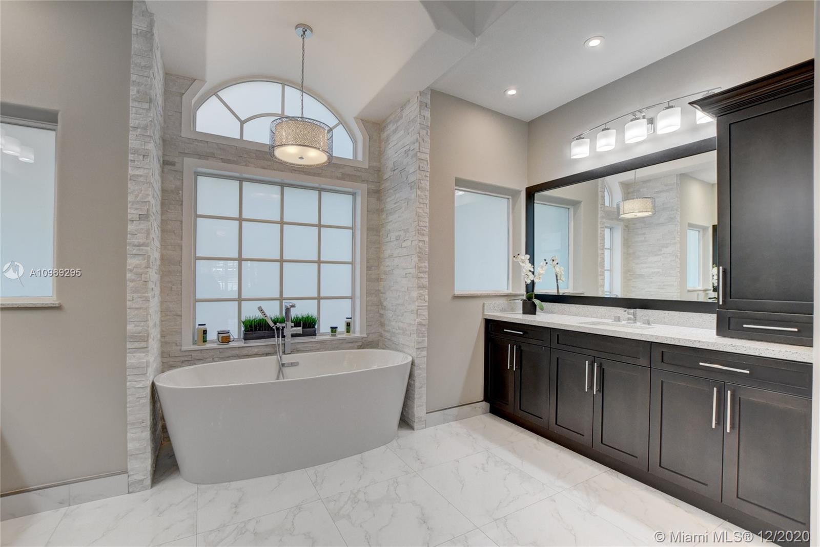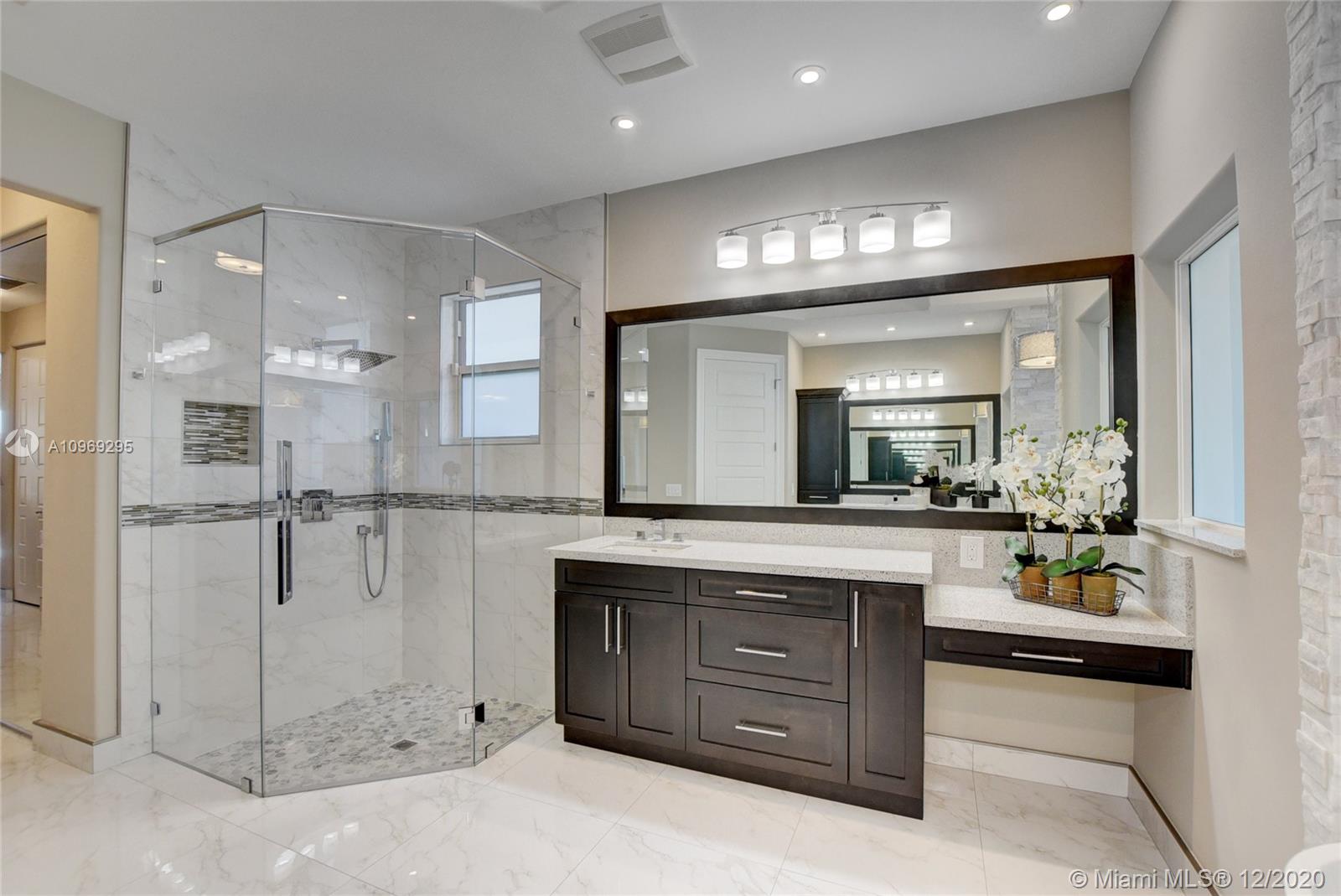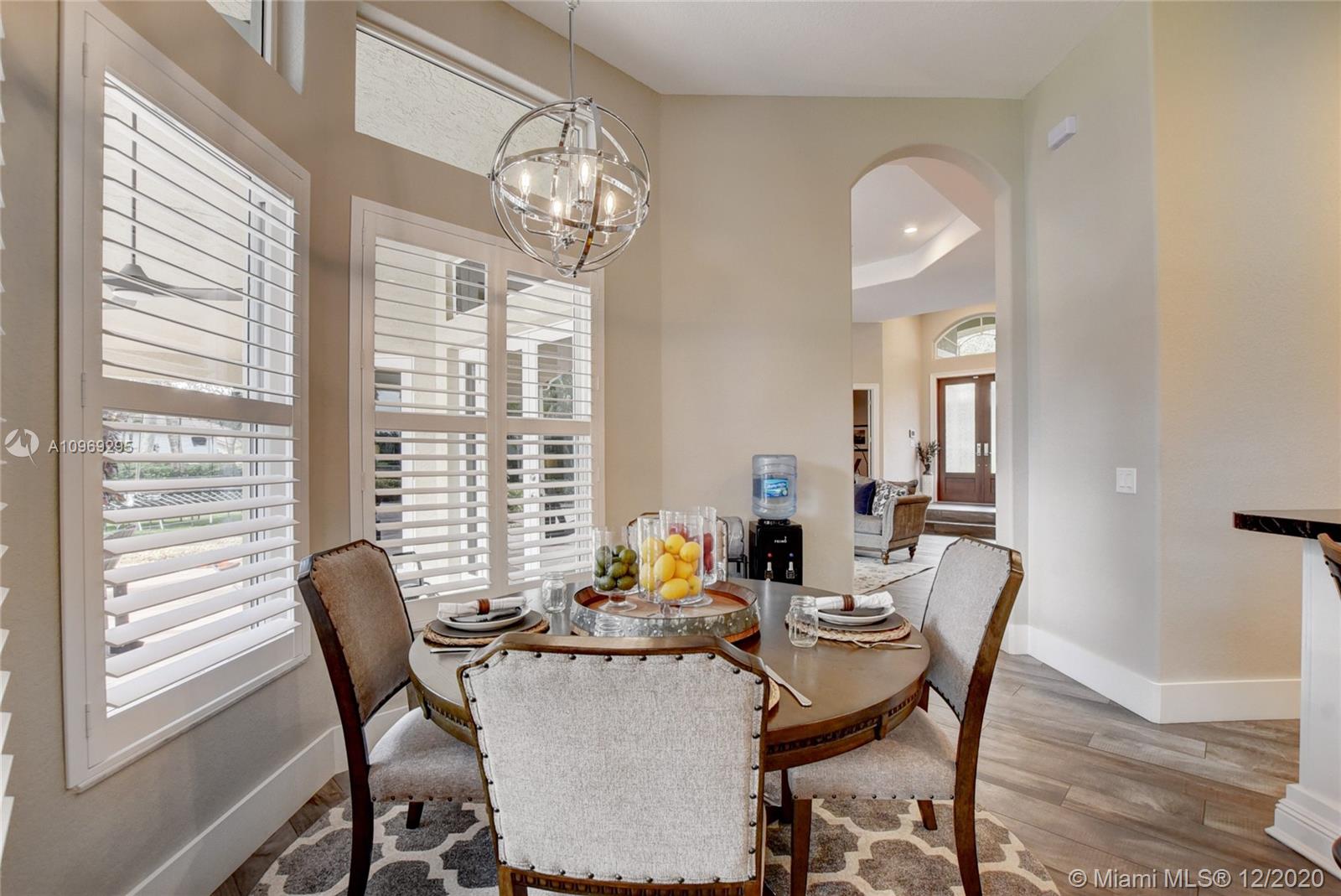 Gorgeous lake view from this immaculate, completely remodeled 5 bedroom + dedicated office + great room/3 bath residence in guard-gated Long Lake Estates. Impact glass windows/doors showcase generous yard, salt system pool w/raised spa, & wide view of the lake. Meticulously maintained & tastefully updated w/high-end finishes: porcelain wood tile flooring w/new 7.25" baseboards, quartz bathroom countertops, undermount sinks. Newer roof (2007) w/Roof-a-cide treatment, New a/c's, new Rheem water heater, new LG washer/dryer and all new Samsung & GE Profile kitchen appliances. U-line wine fridge, Plantation shutters, customized shelving in all closets. 3-car garage w/impact resistant garage doors, higher horse power motors & app-controlled entry. Whole-house water filtration/softening system.