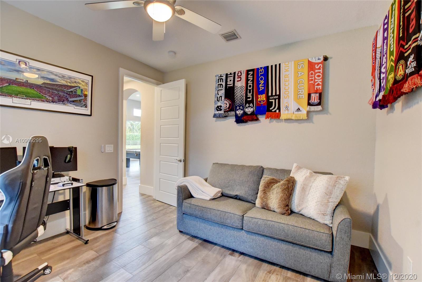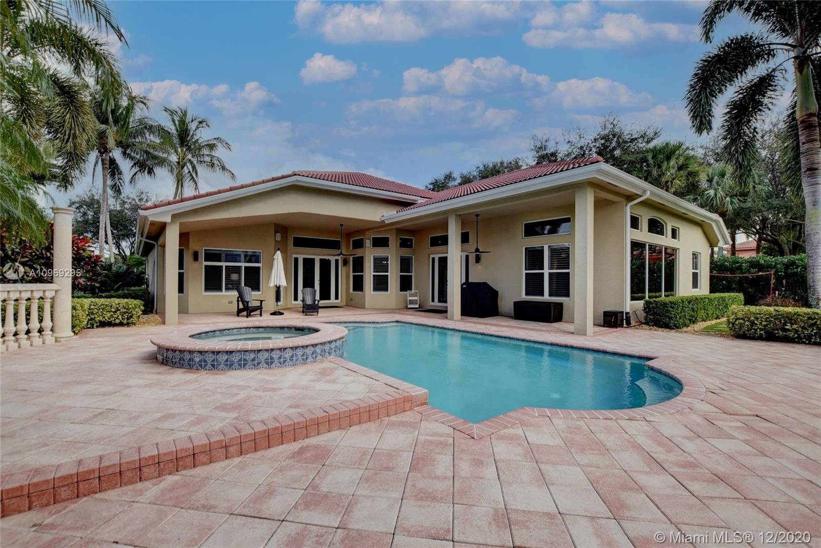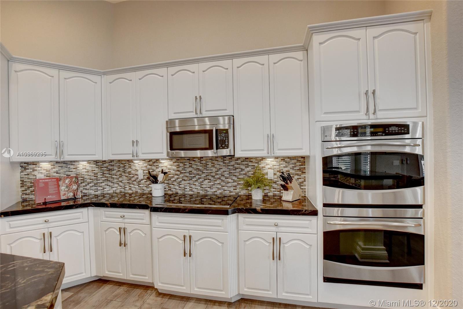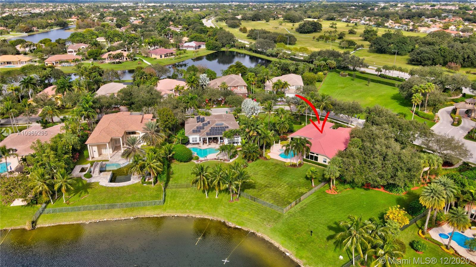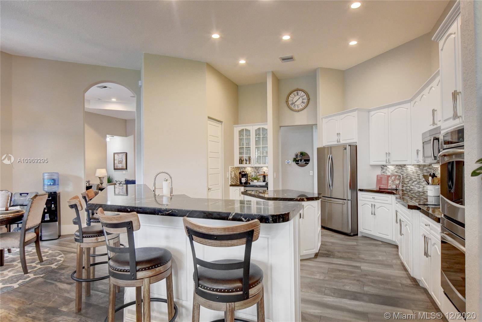Gorgeous lake view from this immaculate, completely remodeled 5 bedroom + dedicated office + great room/3 bath residence in guard-gated Long Lake Estates. Impact glass windows/doors showcase generous yard, salt system pool w/raised spa, & wide view of the lake. Meticulously maintained & tastefully updated w/high-end finishes: porcelain wood tile flooring w/new 7.25" baseboards, quartz bathroom countertops, undermount sinks. Newer roof (2007) w/Roof-a-cide treatment, New a/c's, new Rheem water heater, new LG washer/dryer and all new Samsung & GE Profile kitchen appliances. U-line wine fridge, Plantation shutters, customized shelving in all closets. 3-car garage w/impact resistant garage doors, higher horse power motors & app-controlled entry. Whole-house water filtration/softening system.