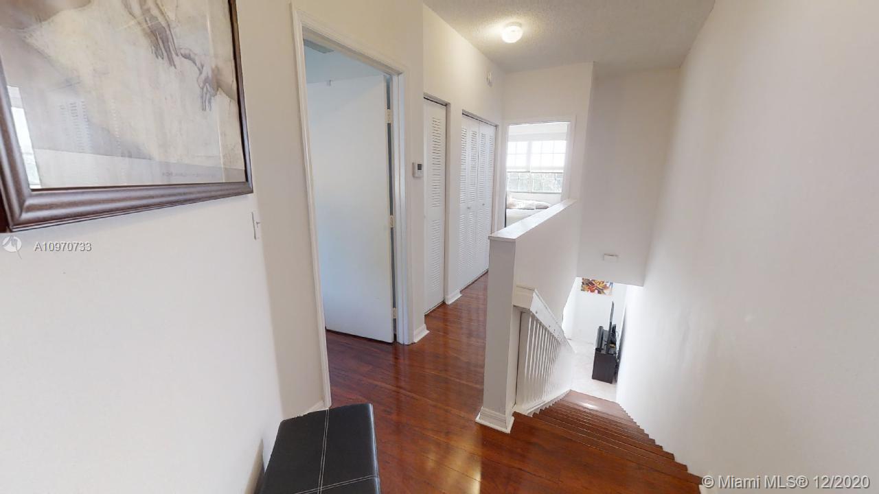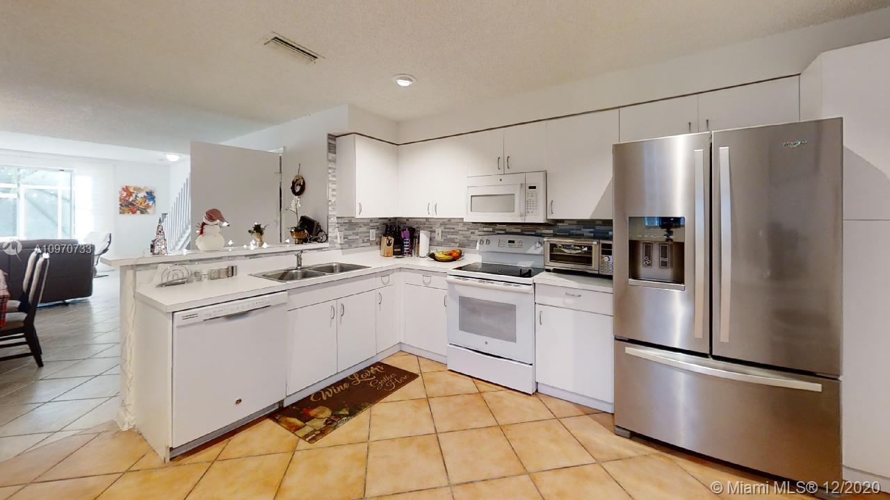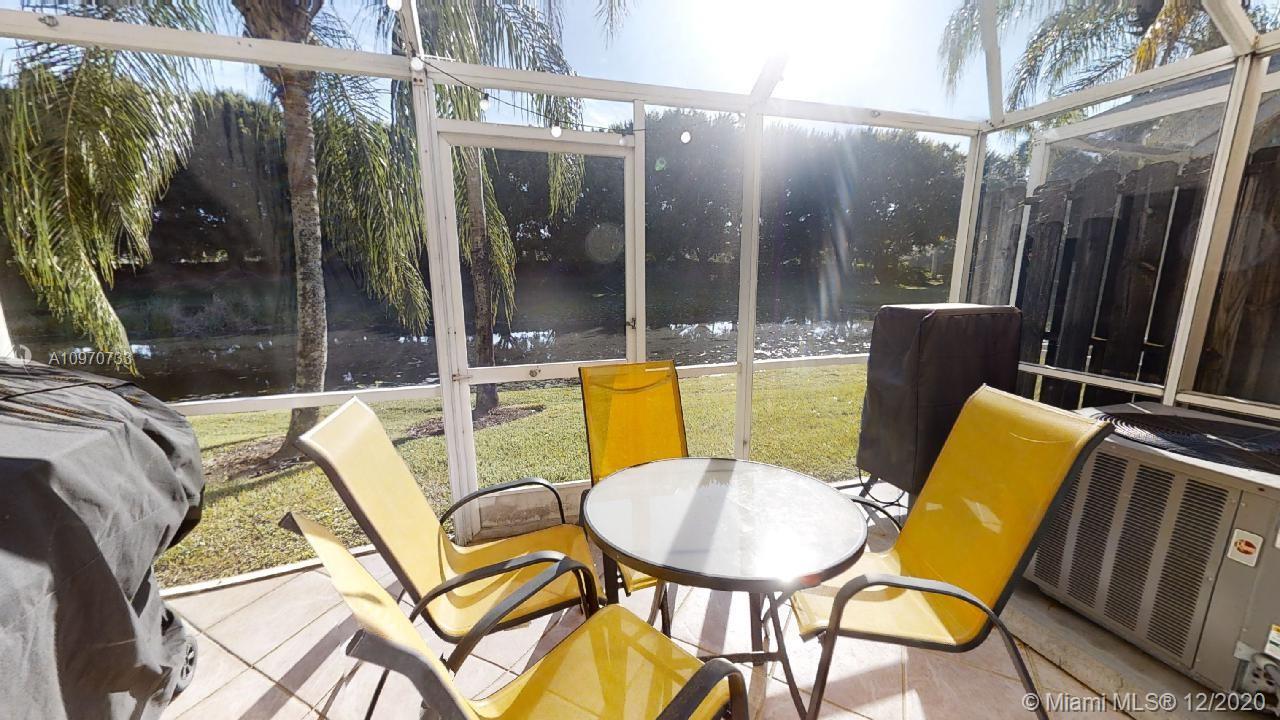 Gorgeous Townhouse to enjoy the peaceful water view from your backyard screened in patio. This 3 bedroom 2.5 baths is partially remodeled. Nice kitchen cabinet, Laminate flooring through the second floor, Beautiful bathrooms, and Stunning closet in the master bedroom. Additional one car parking in the driveway and plenty guest parking around the community. Very low HOA fees with includes all exterior maintenance, community pool and amenities. Excellent for families, A+ schools of Weston. Easy to show.