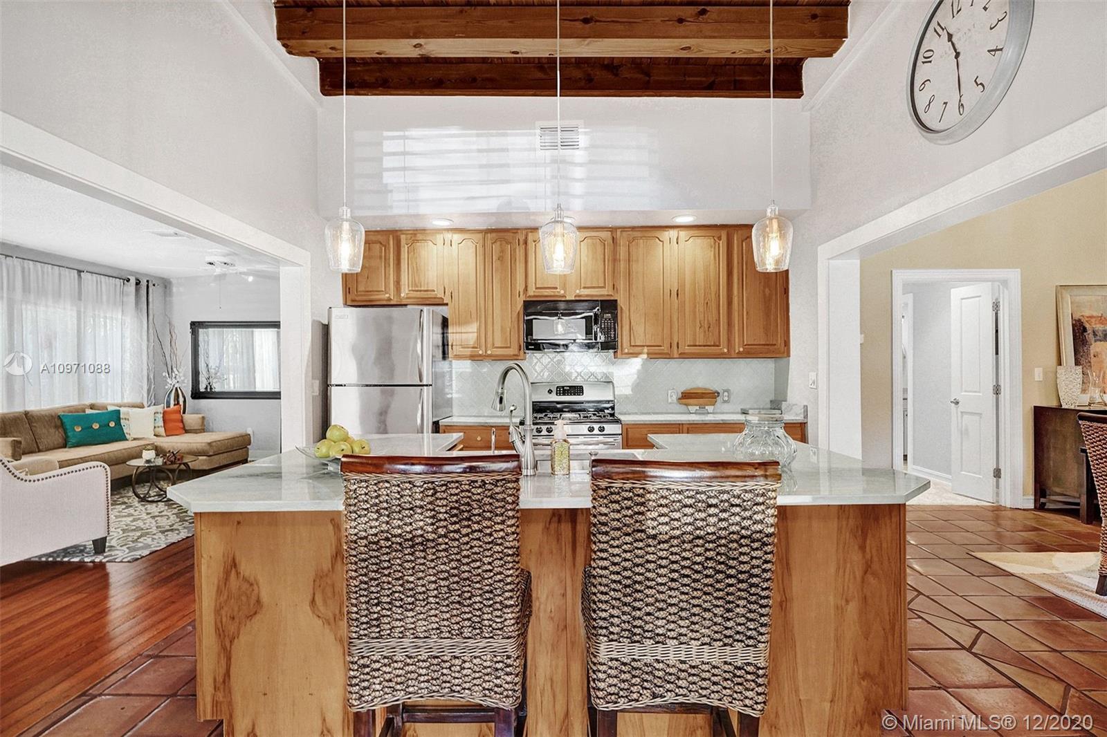 In a neighborhood beloved by Mary Brickell, Frank Stranahan & Francis Abreu sits this 1939 vintage charmer with 3 bedrooms, 2 baths AND a guest house. This seamless blend of old world warmth & sleek modern updates features an alluring updated kitchen with gleaming quartz counters, stainless steel appliances, wood cabinetry, Dade County pine floors, exposed wood beams & a formal dining room. 4 French doors flow to multiple decks & lead to a privacy fenced backyard with citrus, banyan & palm trees. The cute guest cottage, which is perfectly placed in a shaded backyard leaving plenty of room for a new pool, boasts a kitchenette, bathroom & separate laundry & has a mo-to-mo tenant paying $1,000 monthly. Great for your new socially distanced office, gym, mancave, she shed, classroom or income!