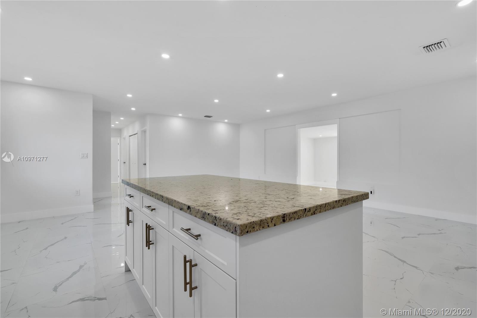 Beautiful updated home with a modern theme ready to move in featuring 3 bedrooms / 2 bathrooms, located in a very quiet neighborhood minutes from the beach. As you walk in you are greeted with an open floor plan with a stunning completely renovated kitchen featuring a 6 foot island with quartz countertops and SS appliances. Brand new light fixtures, ceramic tile floors, and updated bathrooms. Home features impact windows and doors throughout. Minutes from great schools, major highways (I95,Turnpike), banks, Aventura Mall and other new shopping centers. No HOA!