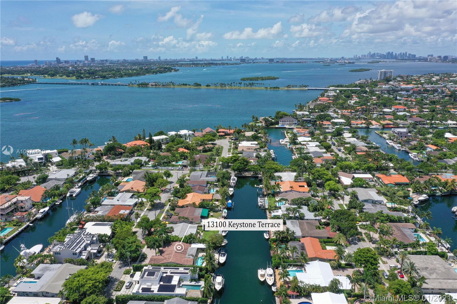 Keystone Island, Miami features 5 bedrooms,4 ½ baths. 78ft on deep water ocean access canal. Only 3 mins to Bay–No bridges. Bright, airy open kitchen concept with Bosch Appliances. Primary bedroom w/large walk-in closet & huge bathroom, relax in soaking tub overlooking pool & water or wash the stress away in separate shower with rain-head & body sprays. Outdoor covered patio (32’X16’) & shaded palm trees are the perfect combination for entertaining pool side. 2 New AC units. For boaters: 78 ft w/davits & dock power to accommodate most boats, room for jet skis, kayaks & paddle boards. Quiet Cul-de-sac street. 24hr Guard Gate.