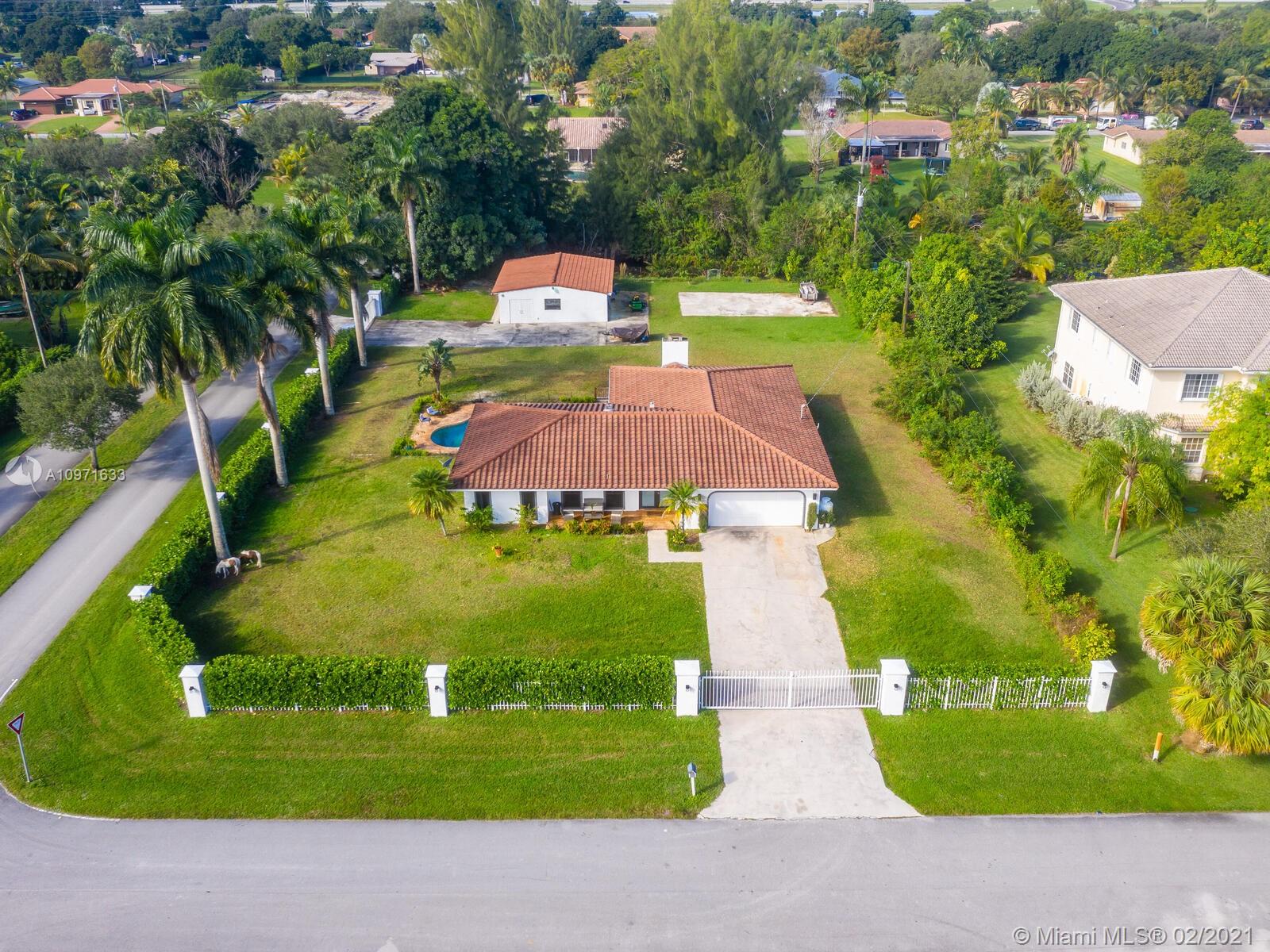 Country living with the luxury of city comforts, wonderful acre equestrian home, spacious open floor plan, wood floors,gated entry, renovated kitchen,beautiful family room with gorgeous fireplace with pool view. Second building that can be used as a guest house, office, storage or a Barn! Bring your horses-boat-RV... A+schools! Davie, Weston & Southwest Ranches neighborhood