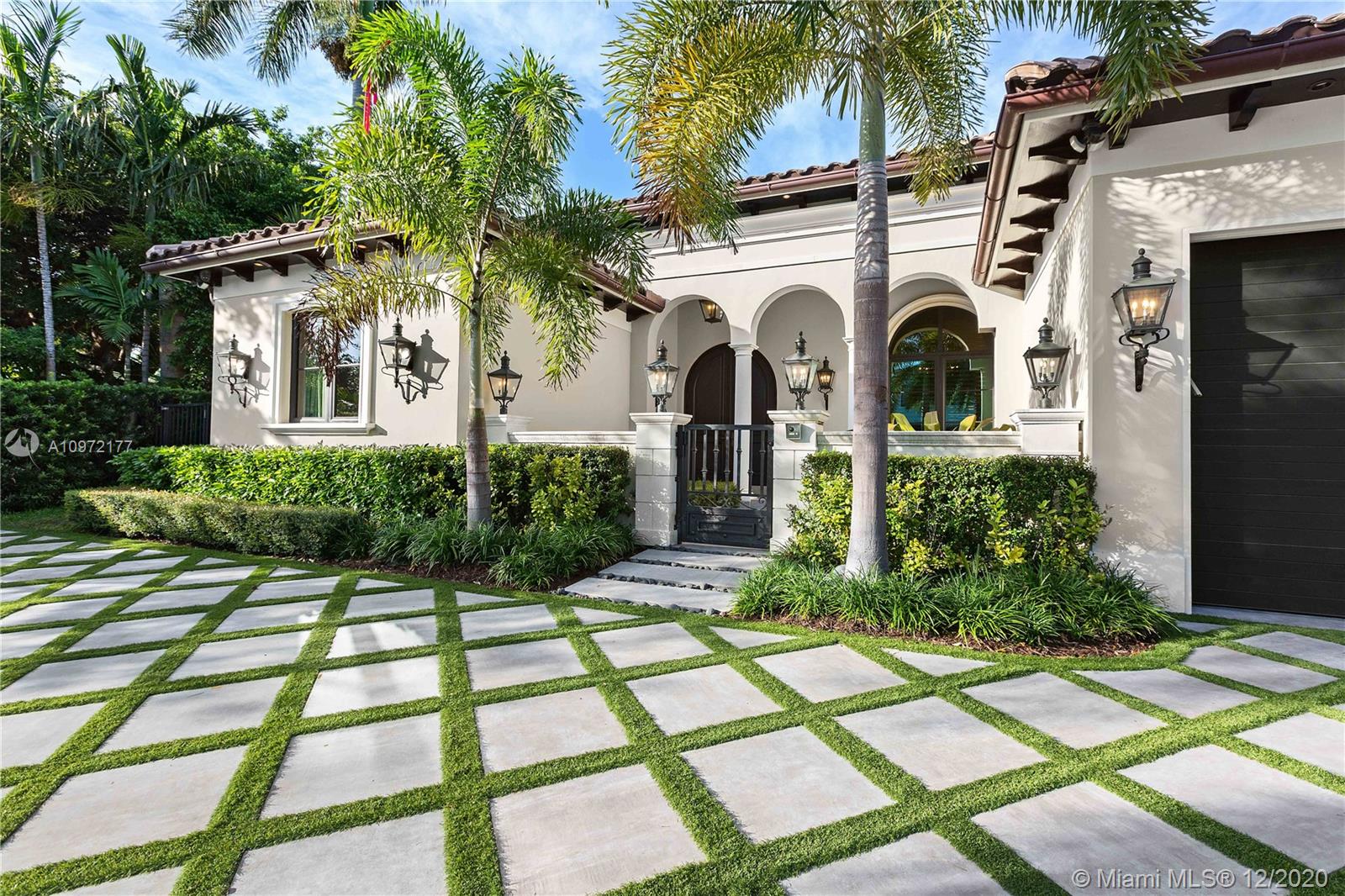 Fabulous custom built home in Bay Harbor... This smart home has everything; 5-bedrooms, 6-baths, each bedroom has en-suite bathroom, bright open floor plan with 14-foot coffered ceilings, gas stove, kosher kitchen, indoor laundry, & security cameras to start. The home has a circular driveway and a gated backyard with a covered patio, BBQ area, pool and hot-tub with smart controls. Impact windows, 2-car garage with epoxy floors. In an amazing neighborhood. This market is hot, don't let someone else beat you to it.