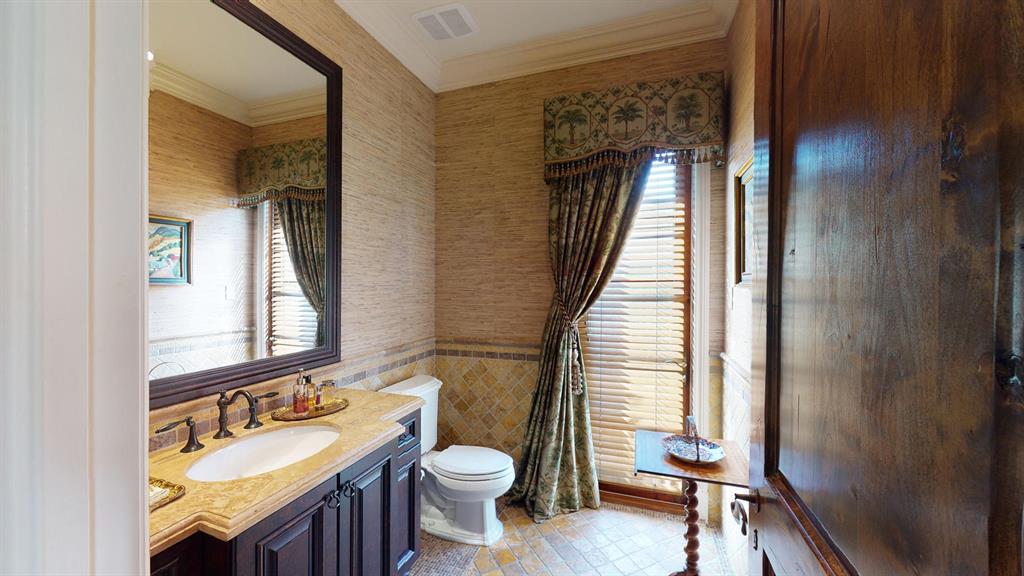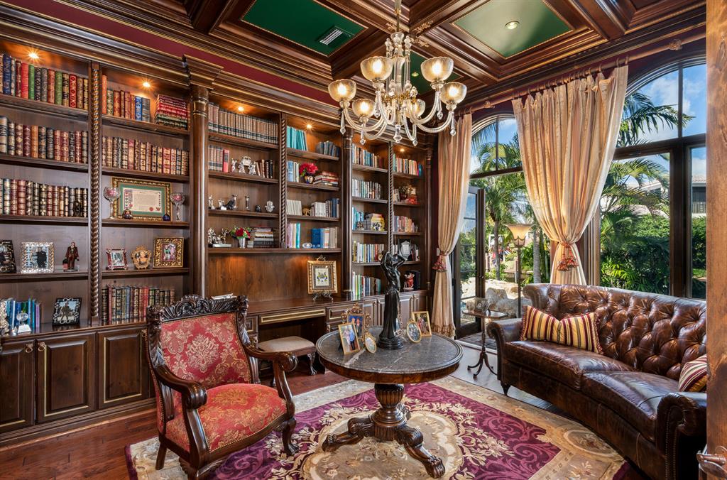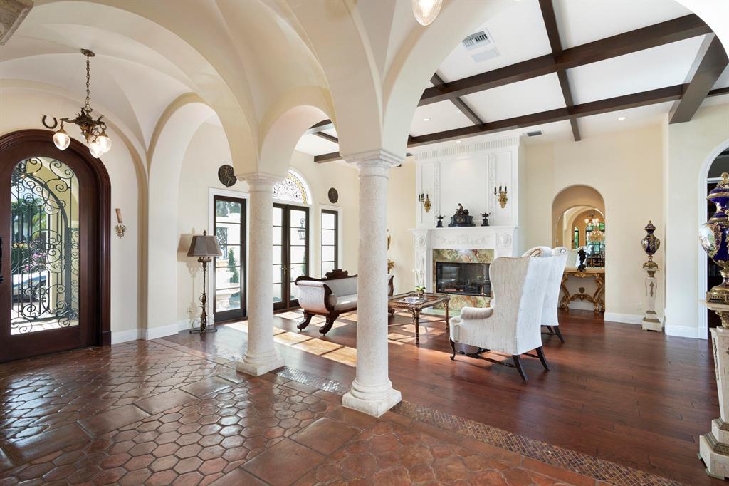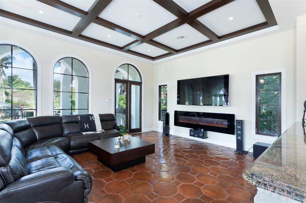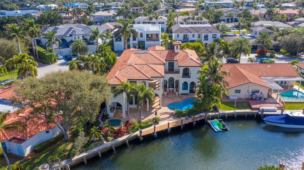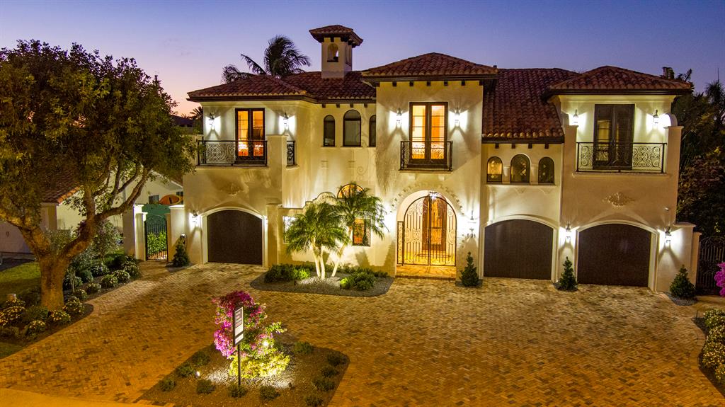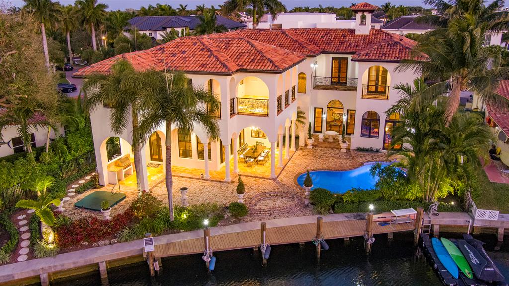A beautifully landscaped brick motor court and a welcoming gated inner courtyard with a fountain introduce this impressive residence. With 100+/- feet on the waterfront and a deep-water full-service dock, this legacy property offers beautiful partial views down the canal to a nature preserve. Sundrenched and serene, with mature low-maintenance landscaping providing privacy, a dining loggia and a summer-kitchen loggia overlook the free-form waterfall pool and Jacuzzi set within a bricked terrace, and a walkway leads to the private sauna. Shown by appt. only.