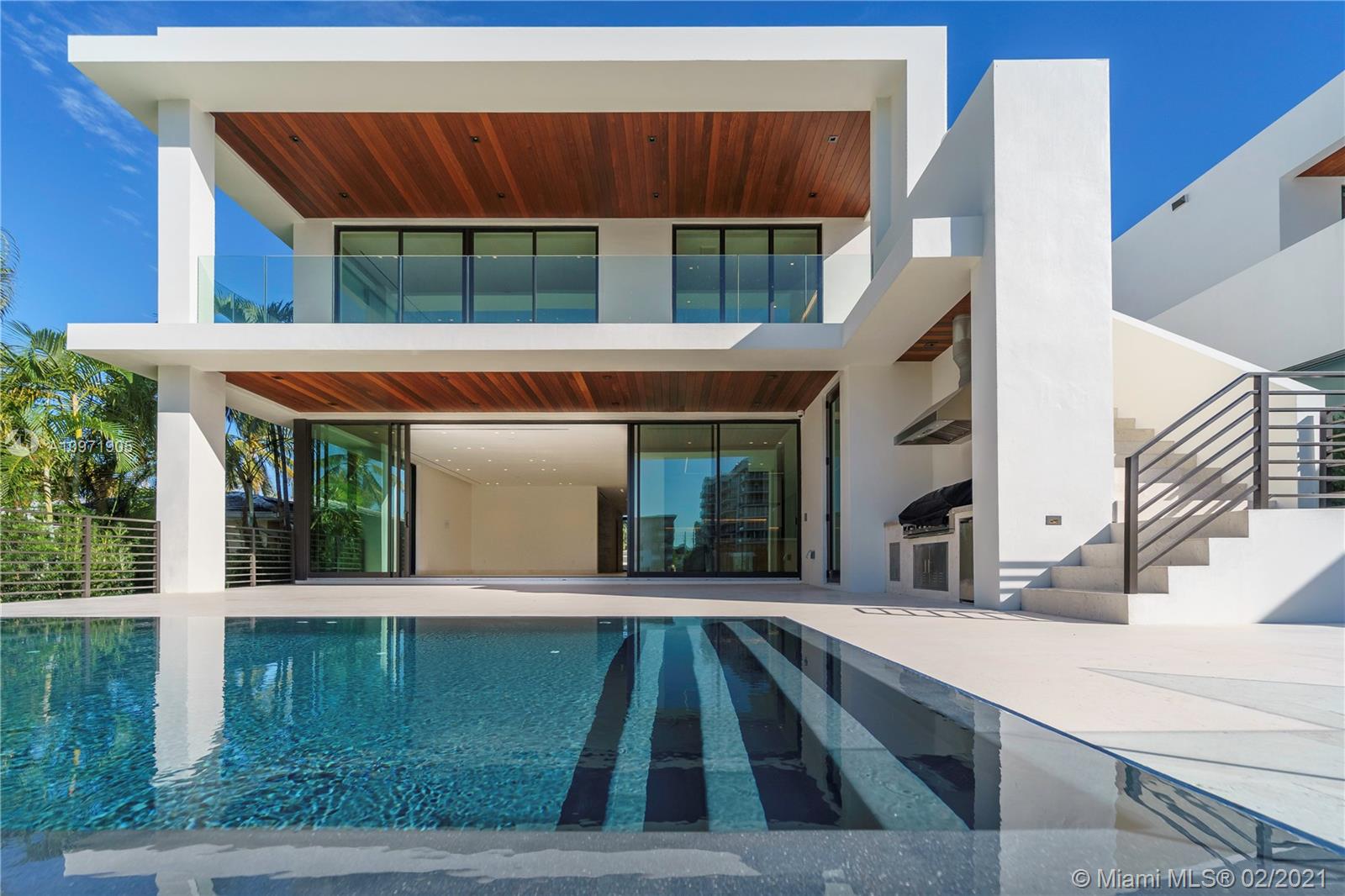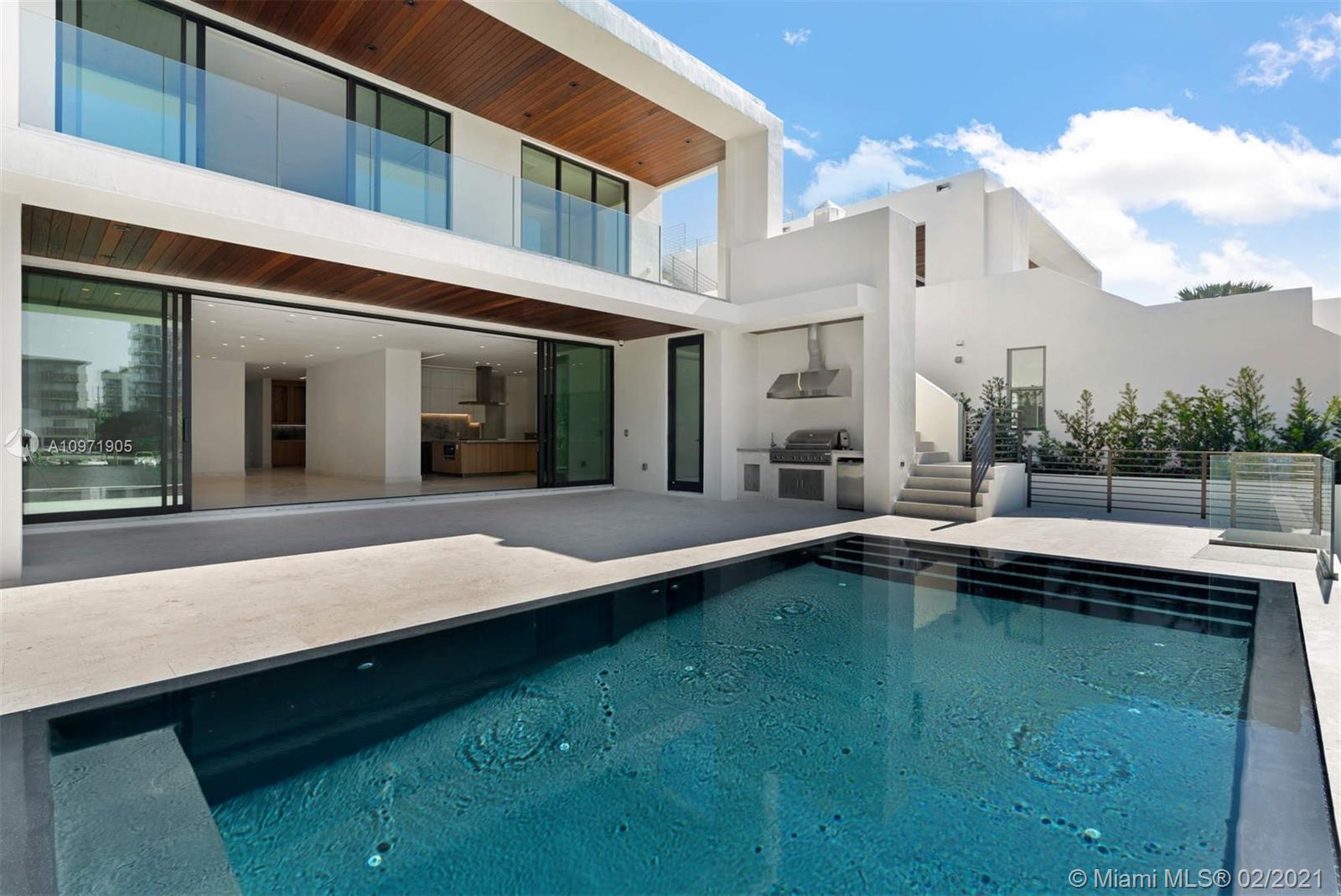Brand new & just completed one-of-a-kind home in Surfside. New Construction with 50' wide waterfront. Smart home with 6,800 SF of interior space, 10’ foot ceilings, 7 BR 8.5 BA, rooftop terrace with 360-degree views & 2,000 SF of outdoor terraces. Upon entering, the 25’ Entranceway, natural light and bay views encapsulate the living quarters, highlighting limestone flooring, custom millwork, and a floating staircase. Enjoy formal dining, & an eat-in kitchen with Wolf & Sub-zero appliances. The back of the home showcases a custom 10-foot sliding glass door, an infinity-edge pool, outdoor kitchen, & cabana bathroom. Upstairs, the Master Suite encompasses the entire back of the home, & another 4 large en-suite bedrooms. Full house generator & 2 car garage.