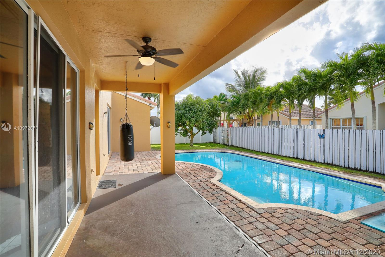 Beautiful two-story home with 5 bedrooms, 3.5 bathrooms, office, and loft area in sought after gated community of Encantada in Pembroke Pines. This home features a bright open floor plan with an inviting living and separate dining room, enjoy with your family the privacy of your own pool and yard. The family room opens into a kitchen with tons of counter space and a breakfast area. All new stainless steel appliances. A spacious master bedroom with two closets and a master bathroom with double sinks and sunken jetted tub with separate shower conveniently located on the first floor. Staircase guides to a loft area, four bedrooms and two full bathrooms. Family Guard gated community with amenities such as gym, playground, community pool, children pool, tennis and basketball courts.