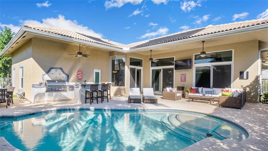 Luxurious and upgraded triple split, this 4 bedroom, 3 bath home in the highly sought after community of Pelican Isle features an open and spacious floor plan along with IMPACT WINDOWS! The beautiful kitchen is the "Heart of the Home" complete with a large customized granite island and stainless steel appliances. MARBLE FLOORS throughout all living areas and beautiful LAMINATE FLOORS in the bedrooms. Owner's Suite features separate tub and a separate shower. Enjoy entertaining in your own private tropical oasis: TOP OF THE LINE WOLF SUMMER KITCHEN WITH GRANITE BAR! SALTWATER POOL SYSTEM WITH SOLAR HEATING! This home is ideal for the entertainer! Don't miss this stunning home!