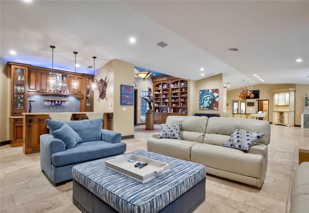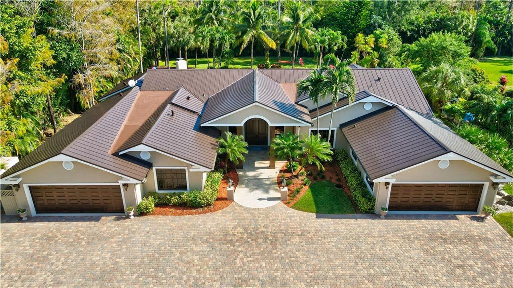 WOW! ONE OF A KIND CUSTOM ESTATE. SPRAWLING ONE STORY SET ON A SPECTACULAR MANICURED ACRE+ PROPERTY WITH A FULLY FENCED REAR YARD & EXPANSIVE SWEEPING CIRCULAR DRIVEWAY. STEP IN TO A GRAND FOYER FLANKED BY BEAUTIFUL BOOKSHELVES, SOARING VOLUME CEILINGS, ENORMOUS GREAT ROOM, FABULOUS KITCHEN WITH HUGE CENTER ISLAND, GAS COOKING & WALK IN PANTRY, FRENCH PATTERN MARBLE FLOORS, FIREPLACE, FULL BAR, AND WALLS OF SLIDERS LEADING TO YOUR OUTDOOR PARADISE. COVERED & OPEN PATIOS, RESORT STYLE POOL WITH FOUNTAINS, WATERFALLS AND LIGHTS. 2 SEPARATE GARAGES ARE VERY LARGE & ONE IS CURRENTLY CENT. AIR CONDITIONED AND SET UP AS A GREAT MEDIA ROOM. BRAND NEW METAL ROOF 2020 , WHOLE HOME 45KW GENERATOR, 3 ZONES OF A/C AND SO MUCH MORE. CALL TODAY, COME FALL IN LOVE & MAKE THIS HOUSE, HOME!