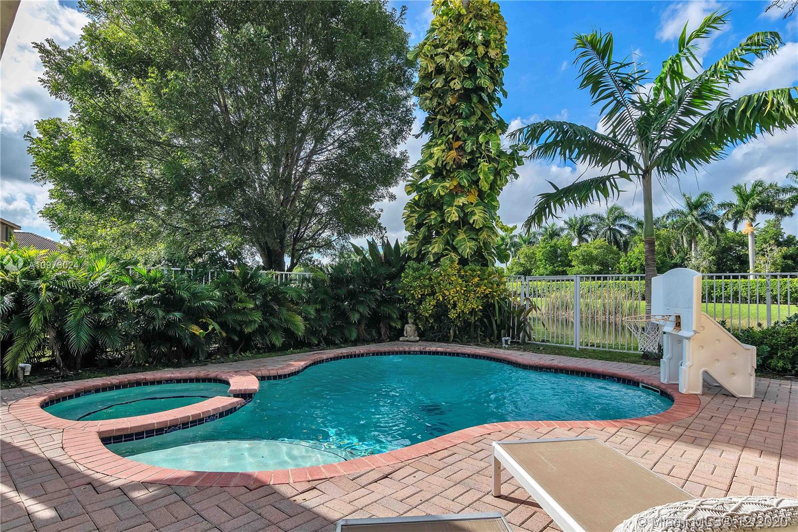 Gorgeous 4 bed/3 bath, with pool and water view in sought after Isles at Weston, zoned for Falcon Cove and Cypress Bay High! This amazing 1 story home shows like a model: neutral colors, convenient 3 way split floor layout, very spacious dining room and large living room overlooking the pool, with luscious landscaping, and huge covered patio area, ideal for relaxing after a long day. High ceilings, bright and airy floor plan, kitchen overlooking the breakfast nook and a wonderful family room, great for entertaining. Large Master Bedroom with direct access to the pool area, Junior suite with its own full bathroom, also used as cabana bath, perfect for guests, office or in-laws. 2 more bedrooms share the 3rd bath. Fantastic amenities including club house, gym, tot lot and more! Call today!